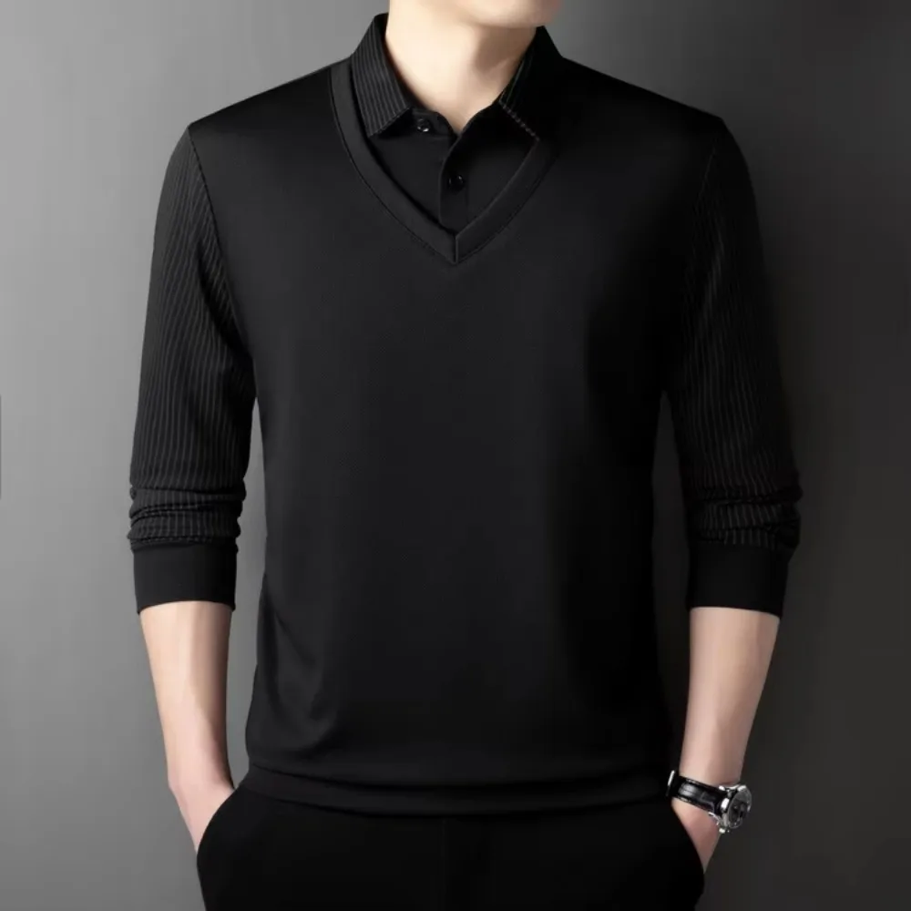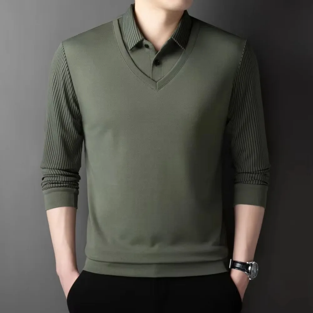 2025 اثنين من الياقات وهمية رجل يوميا عارضة المحملة طويلة الأكمام البلوز البلوز قمم التلبيب بولو المحملة