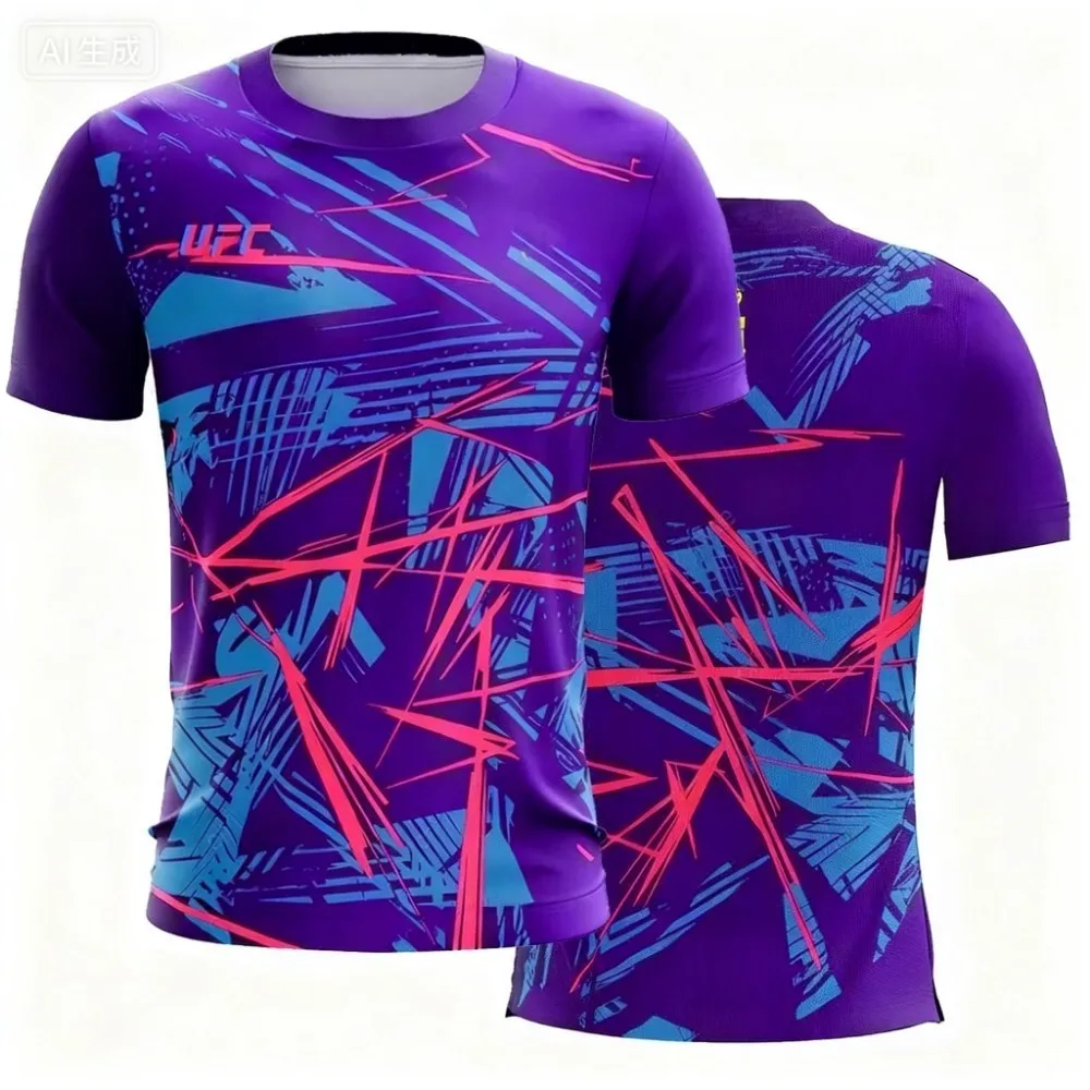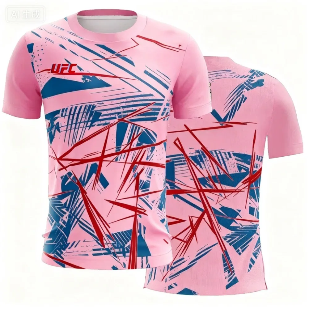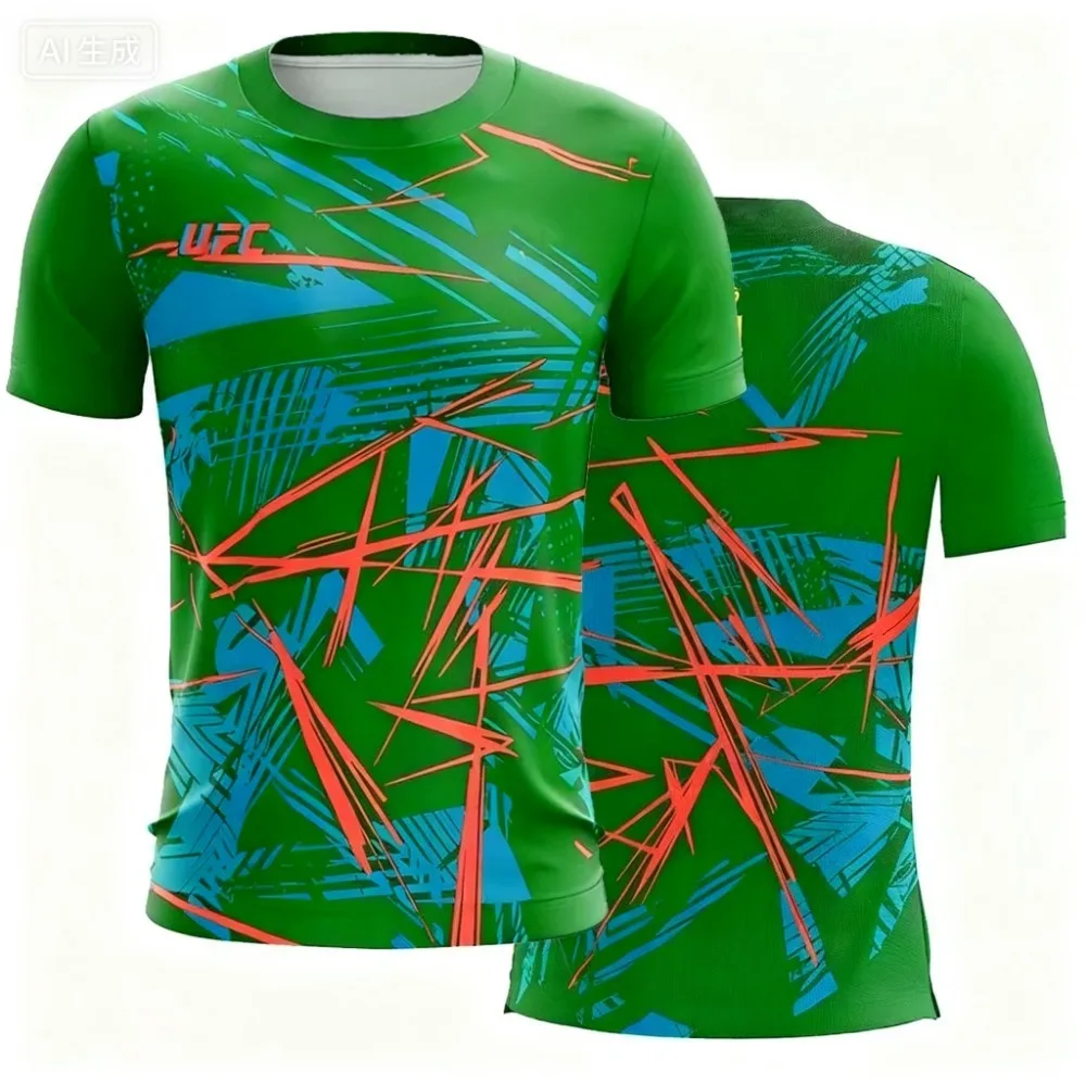 2025 جديد عصري UFC ملابس الشارع عادية تي شيرت رجالي مخطط اللون ثلاثية الأبعاد مطبوعة قصيرة الأكمام الرجال اللياقة البدنية الرياضية