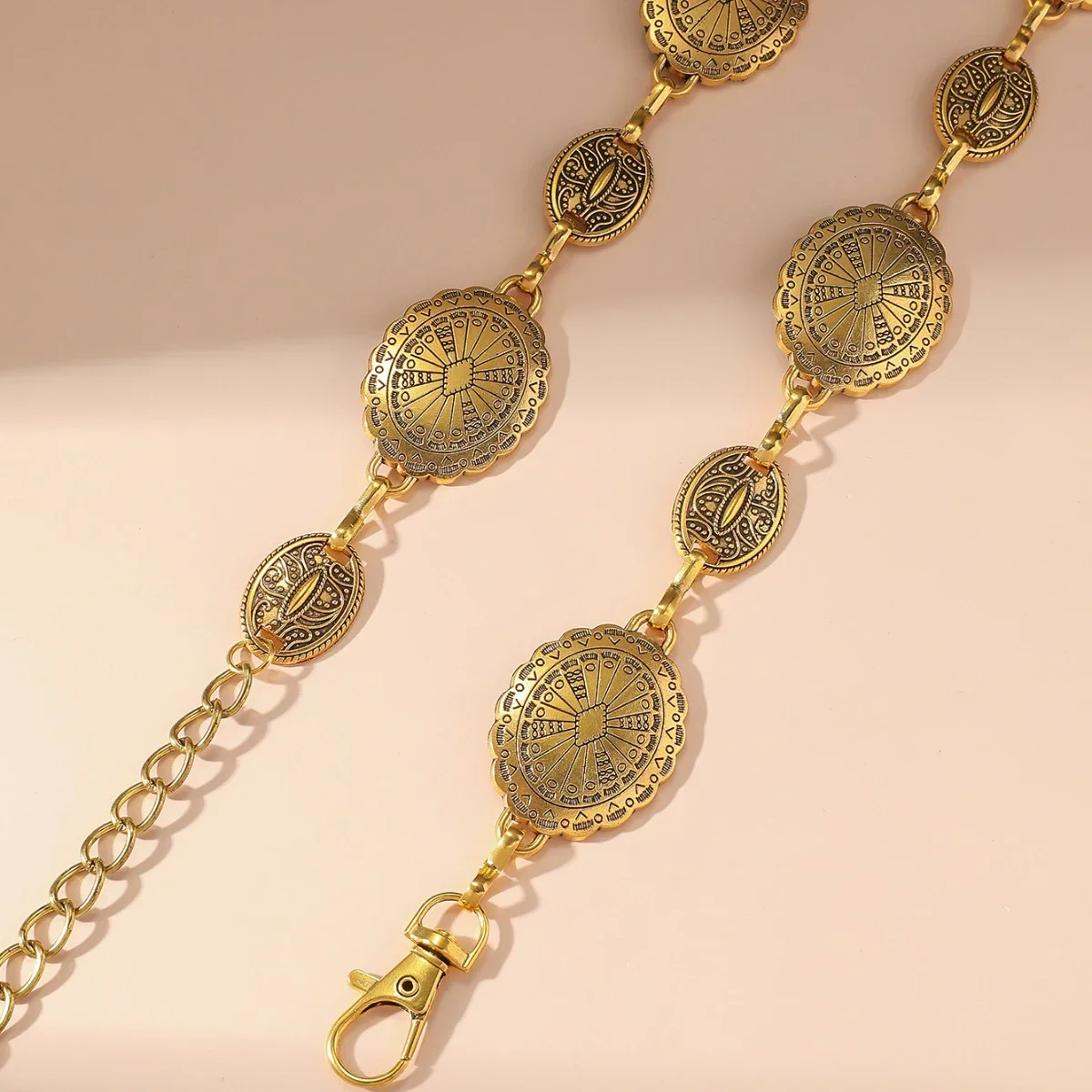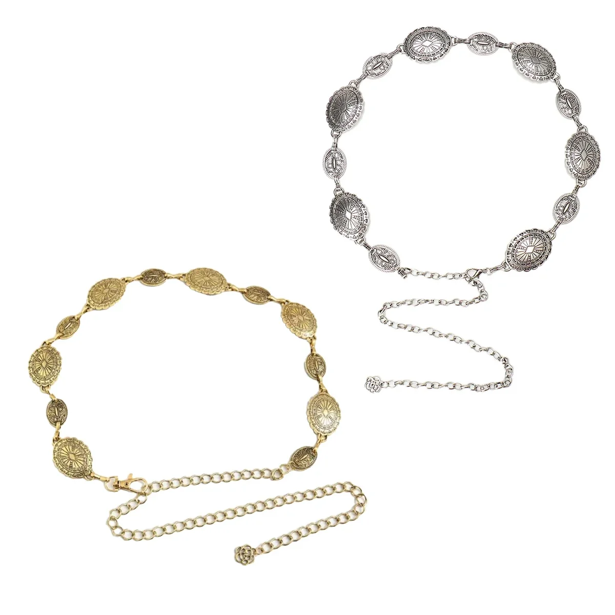 موضة جديدة البيضاوي سلسلة الخصر المعدنية للنساء ريترو ستايل الذهب اللون حزام الإناث مجوهرات هدية