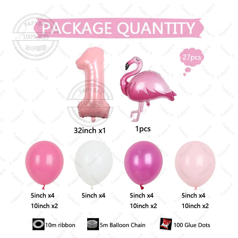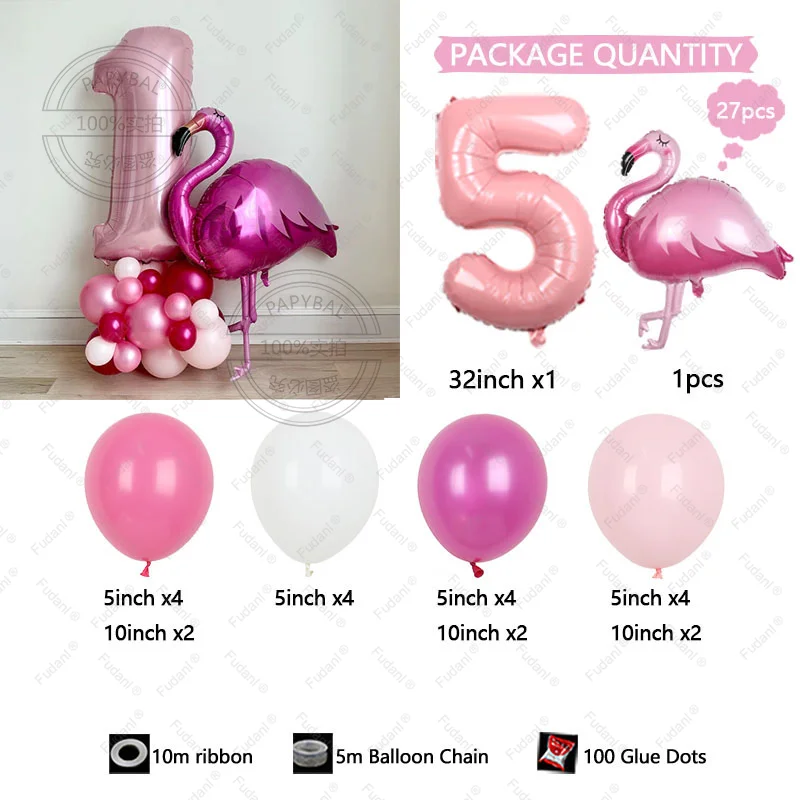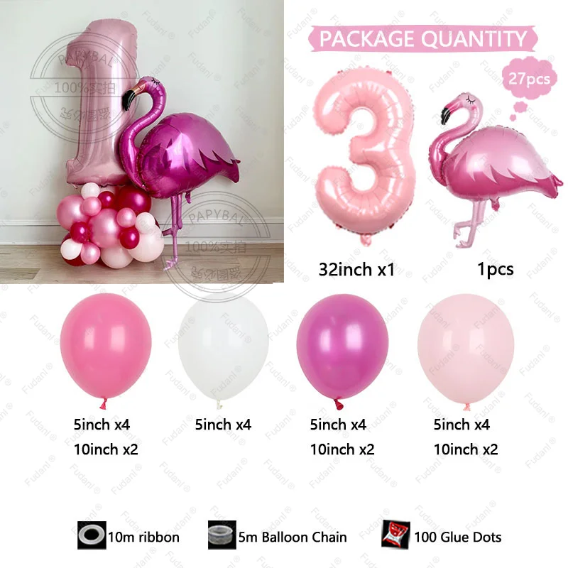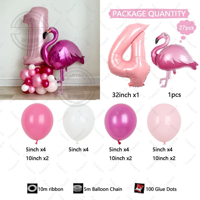 27 قطعة هاواي فلامنغو موضوع بالونات حفلة عيد ميلاد الديكورات 32 بوصة الوردي عدد 1-9 احباط الكرة فتاة عيد ميلاد - الطفل