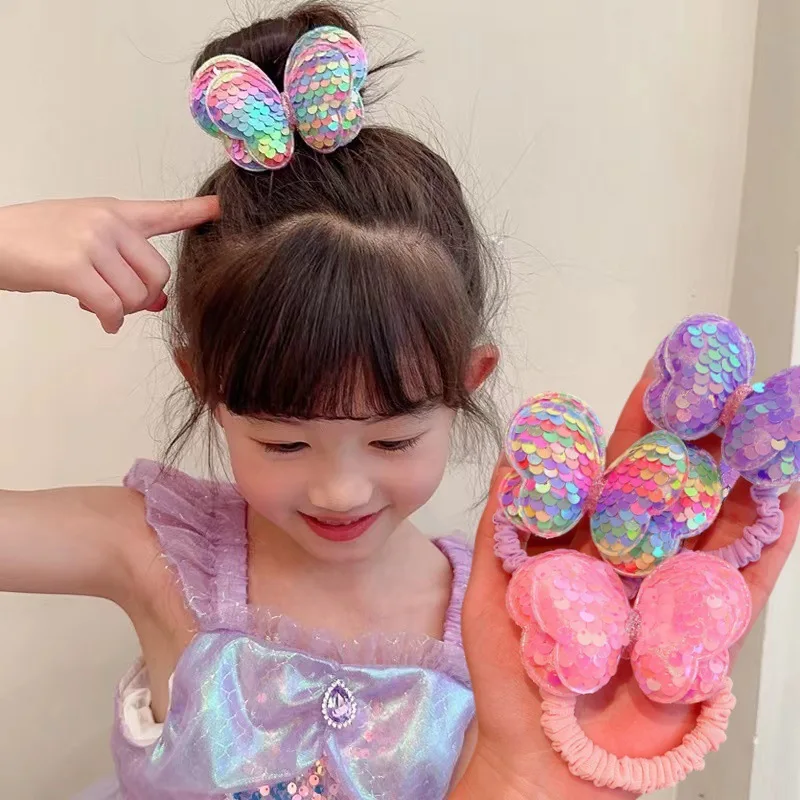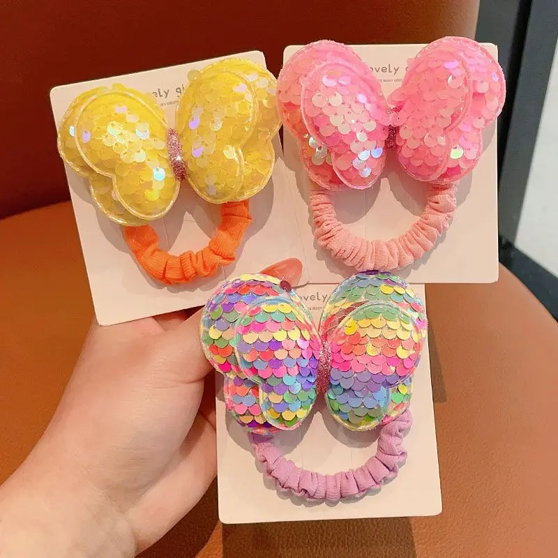 3 قطعة بالترتر الشعر حبل الأطفال Scrunchies فراشة كبيرة التعادل عالية ذيل حصان جديلة فتاة شريط مطاطي أغطية الرأس إكسسوارات الشعر