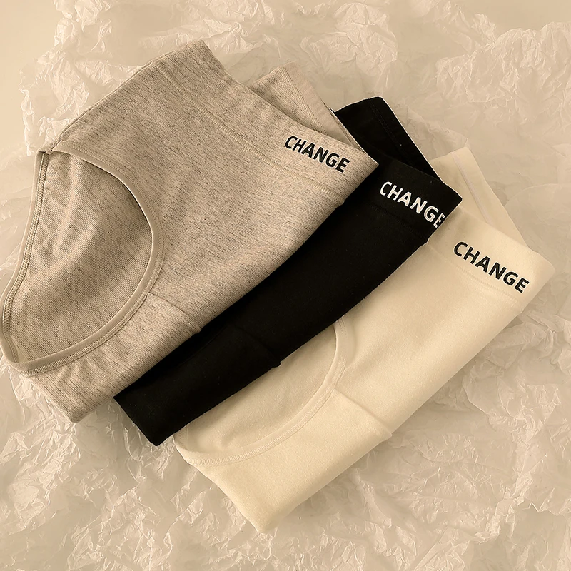 3 قطع سراويل داخلية ناعمة عالية الخصر للنساء عصرية ومريحة رياضية قابلة للتنفس سراويل داخلية مثلثة بسيطة بلون سادة