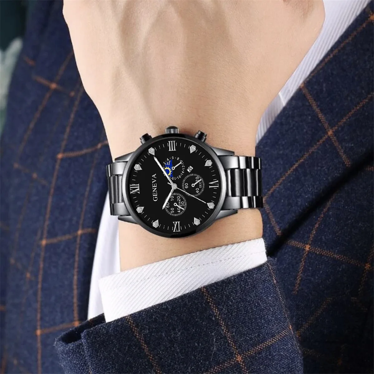 قطعة/المجموعة أزياء رجال الأعمال الساعات الشباب التقويم كوارتز ساعة Relogio Masculino ، أسود اللون