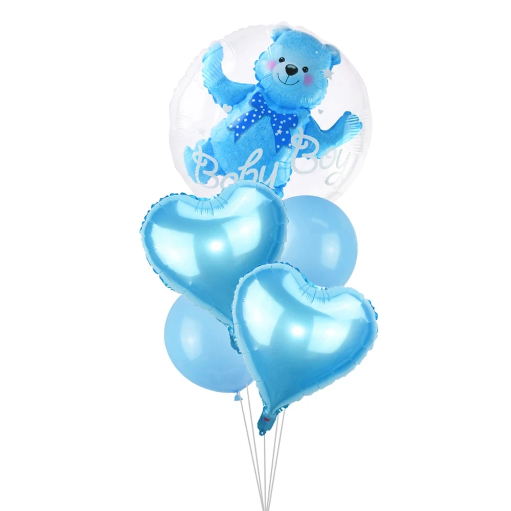 4D شفافة استحمام الطفل صبي فتاة الدب كرة فقاعات الاطفال 1 حفلة عيد ميلاد الأزرق الوردي بالون الهيليوم تكشف الديكور