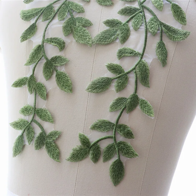 5 أزواج-1 زوج. الأورجانزا سماكة التطريز الأخضر ورقة الدانتيل التصحيح. مرآة زهرة زين. اليدوية DIY الملابس الخياطة الملحقات