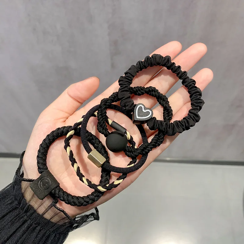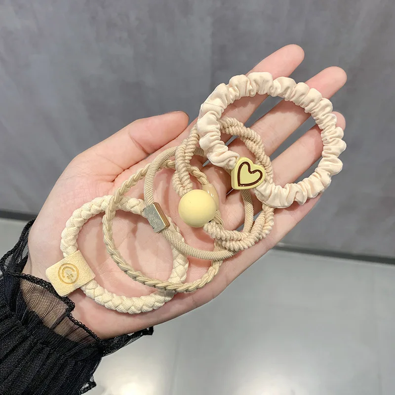 5 قطعة/المجموعة بسيطة القلب الكرة Scrunchie مطاطا مضفر الشعر الحبال النساء الفتيات ذيل حصان شريط مطاطي