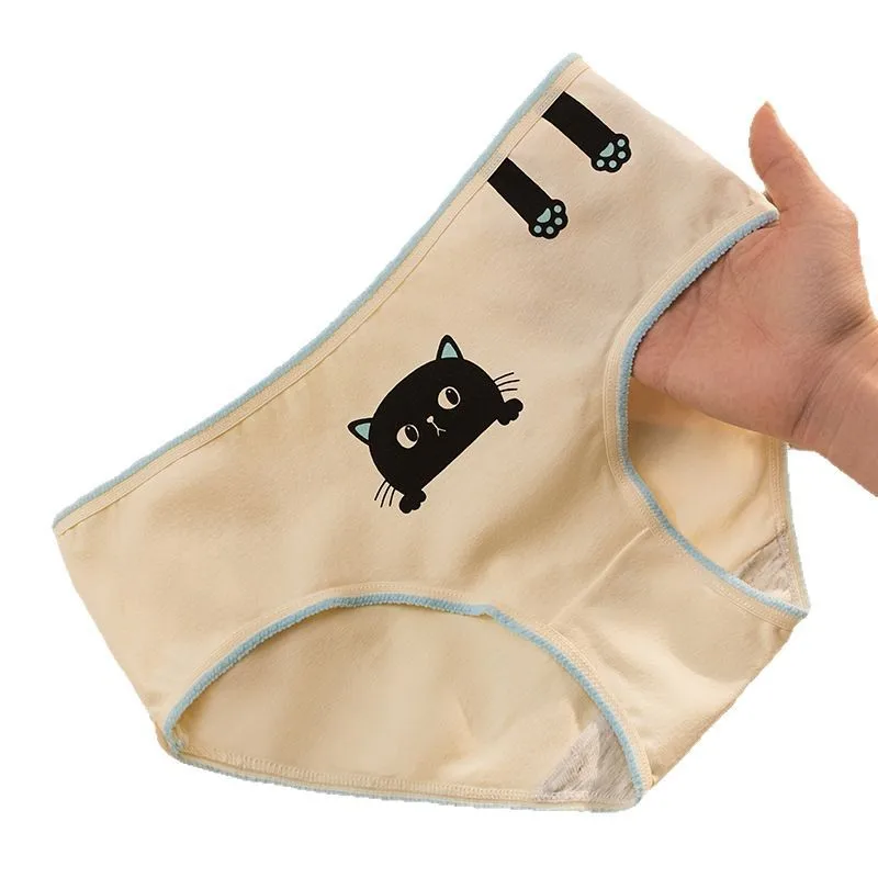 5 قطعة/المجموعة جديد سراويل النساء ملابس داخلية قطنية الفتيات لطيف ليتل القط الأسود ملخصات الإناث لينة تنفس الإناث مثير الملابس الداخلية
