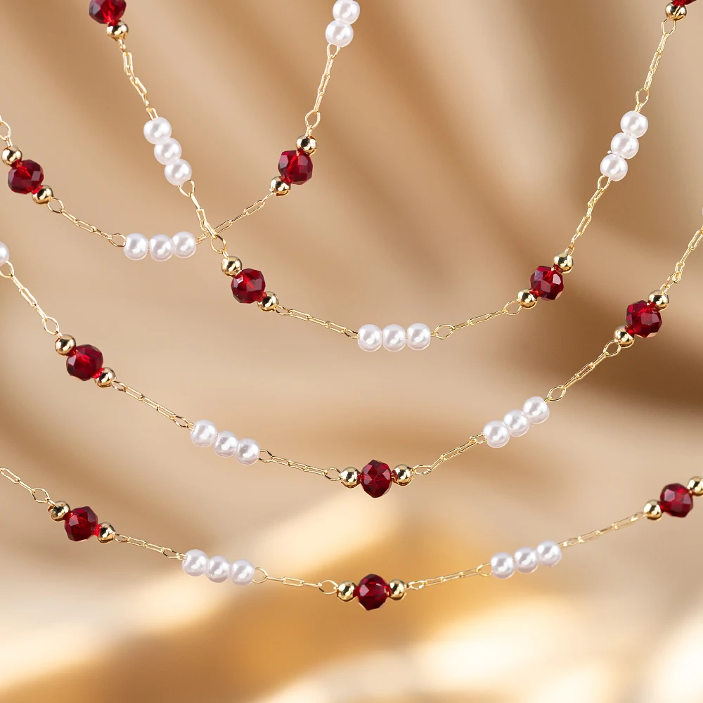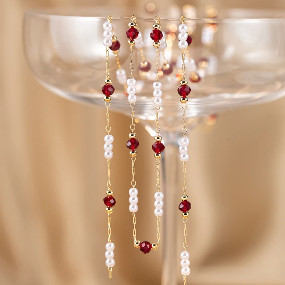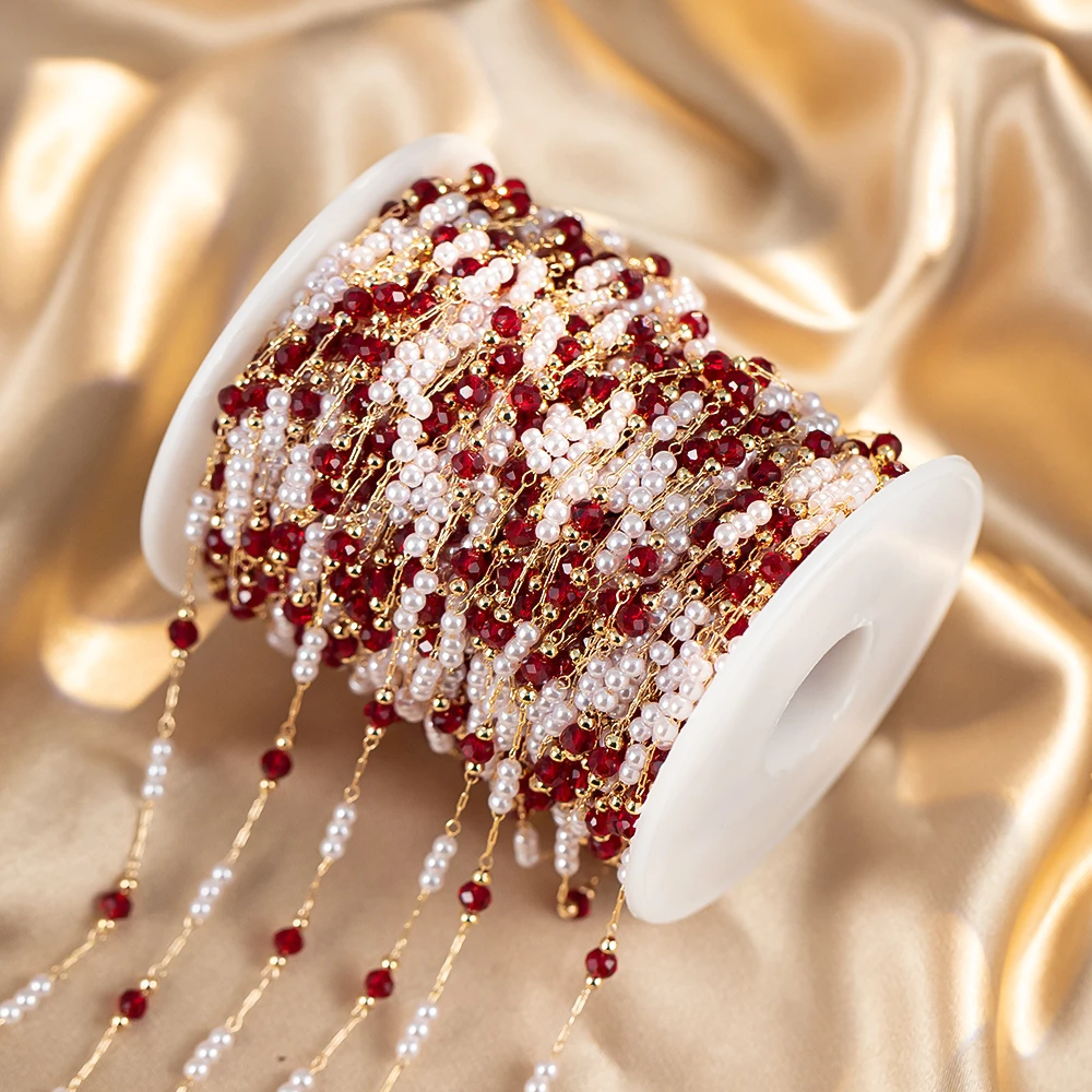 50 سنتيمتر/100 سنتيمتر تقليد اللؤلؤ النحاس سلسلة الأحمر الزجاج حبة سلسلة سوار ذاتي الصنع قلادة مستلزمات صناعة المجوهرات