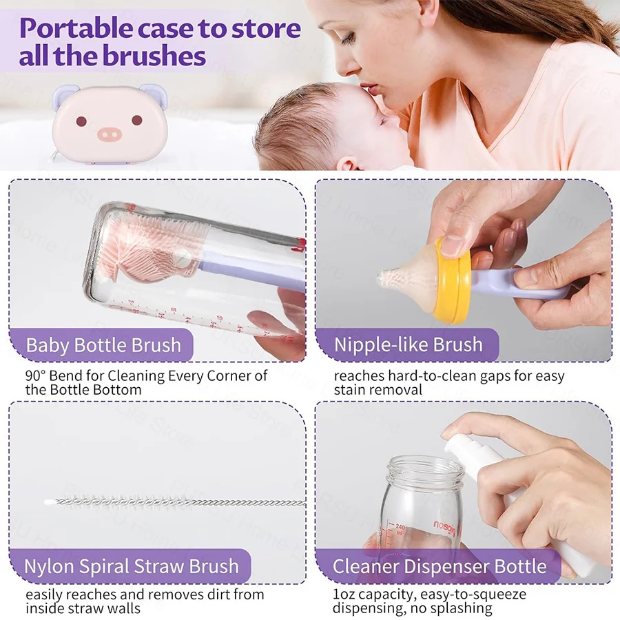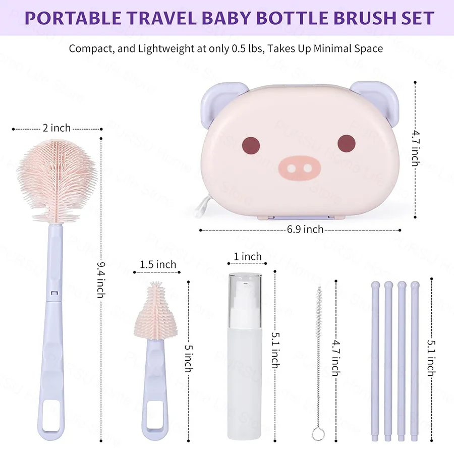 6 في 1 سيليكون فرشاة للزجاجات الطفل المحمولة فرشاة للزجاجات الطفل مجموعة خاصة غسل زجاجة الطفل صندوق تخزين تنظيف الزجاجات