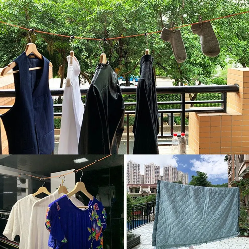 4. سهل التركيب: يحتوي حبل الغسيل المحمول للسفر على خطافات في كلا الطرفين، والتي يمكن ربطها في أي مكان في الحمام، وغرفة الغسيل، والشرفة، والدش، وحوض الاستحمام، والفناء الخلفي، إلخ. هذا جهاز مفيد جدًا لتجفيف الملابس في الداخل والخارج.