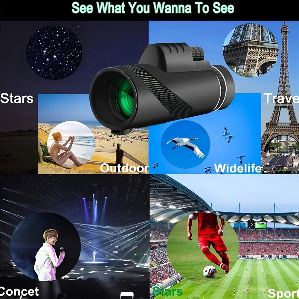 80x100 HD التكبير قوية أحادي تلسكوب المحمولة مناظير طويلة المدى تلسكوب الصيد التخييم مع ترايبود مشبك الهاتف