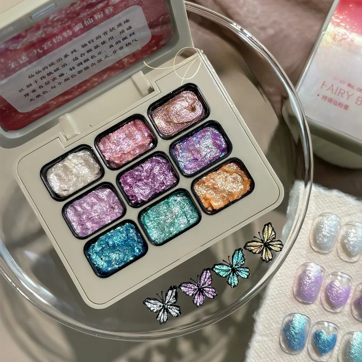 9 ألوان مسمار الفن أورورا الجنية مسحوق كريم الربيع الصيف لتصميم مانيكير المهنية زينة الصباغ مسمار الملمس هلام