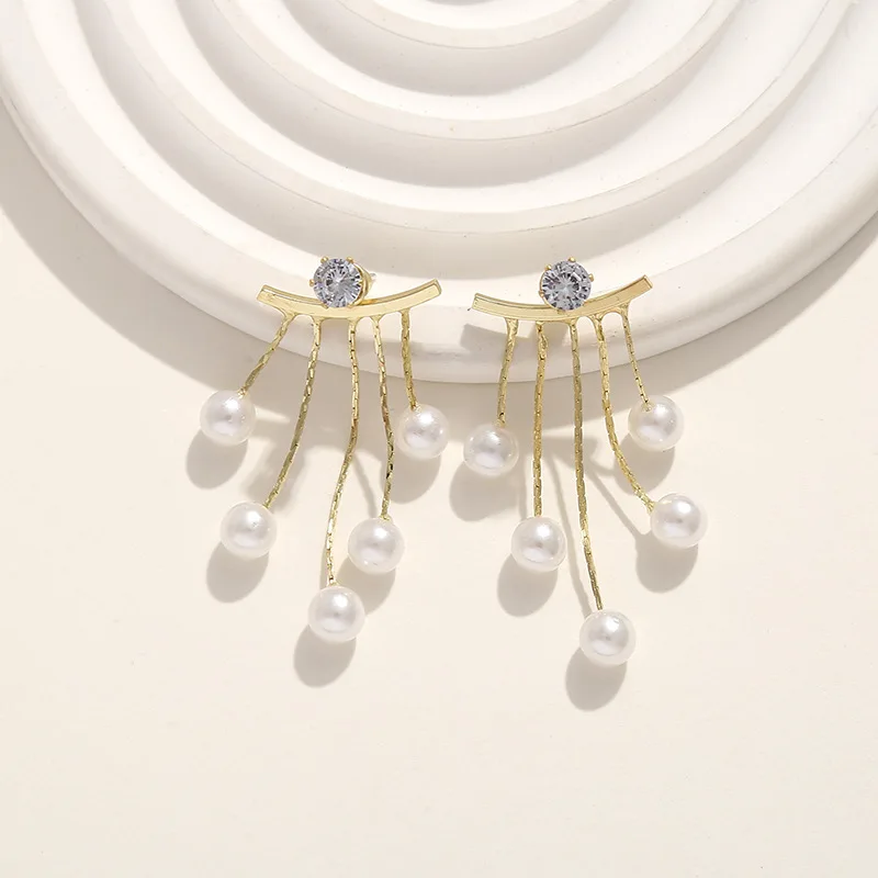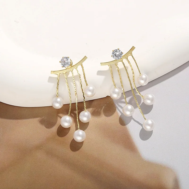 925 الفضة إبرة الكورية موضة اللؤلؤ شرابة أقراط للنساء مجوهرات 2024 تتجه جديد فاخر المرأة الزركون أقراط اللؤلؤ