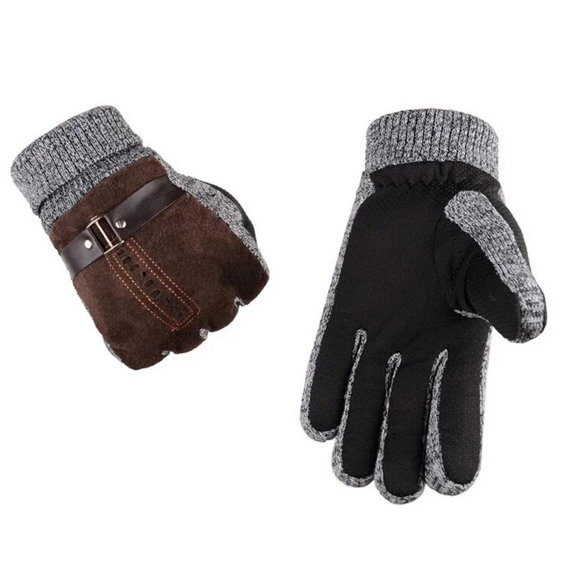 عالية الجودة محبوك قفازات صوف الشتاء رشاقته الصوف الدافئة الرجال حجم كبير جلد طبيعي موتو قفازات الذكور القفازات G124
