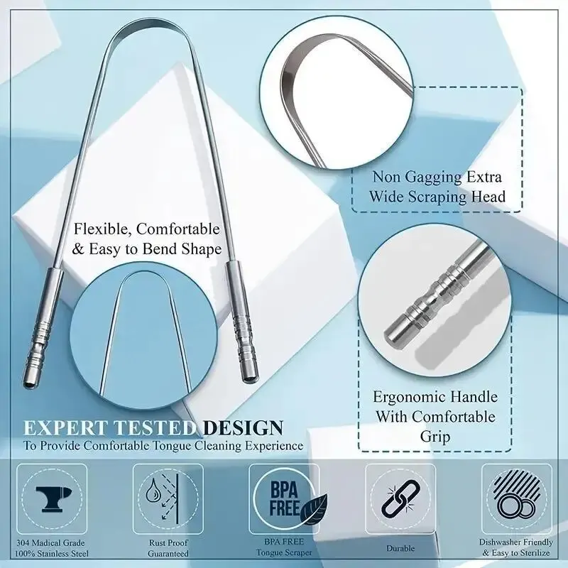 على شكل حرف كاشط طلاء اللسان ، وإزالة رائحة الفم الكريهة تجلب نفسًا جديدًا ، ومناسبة للفم ، والرجال والنساء