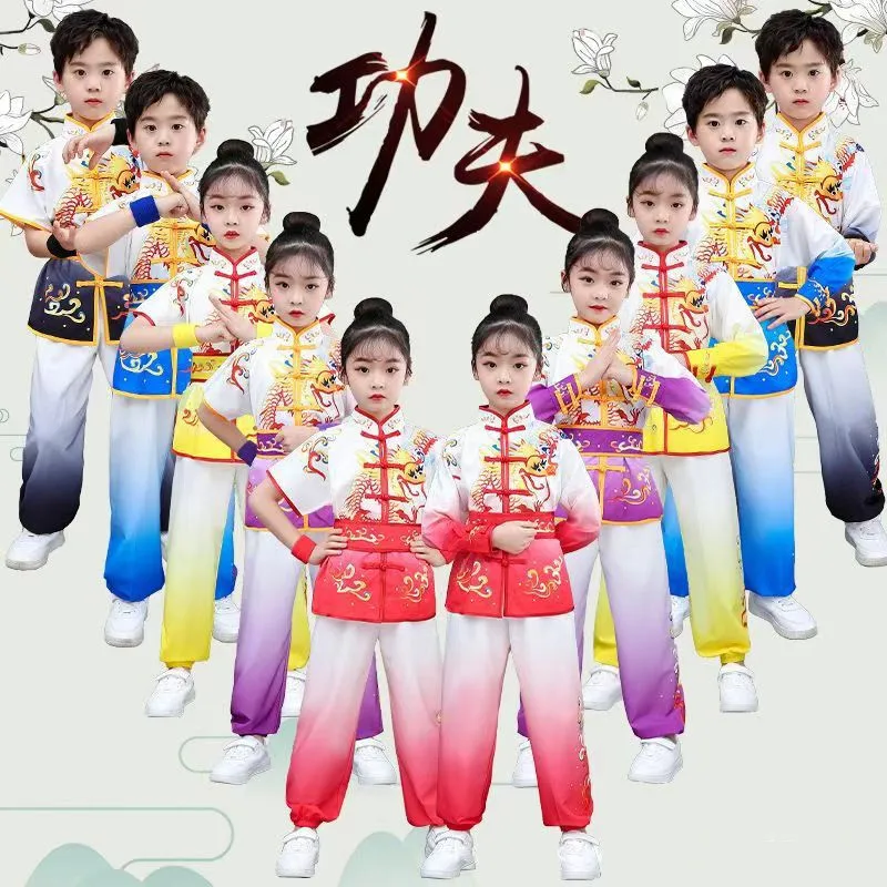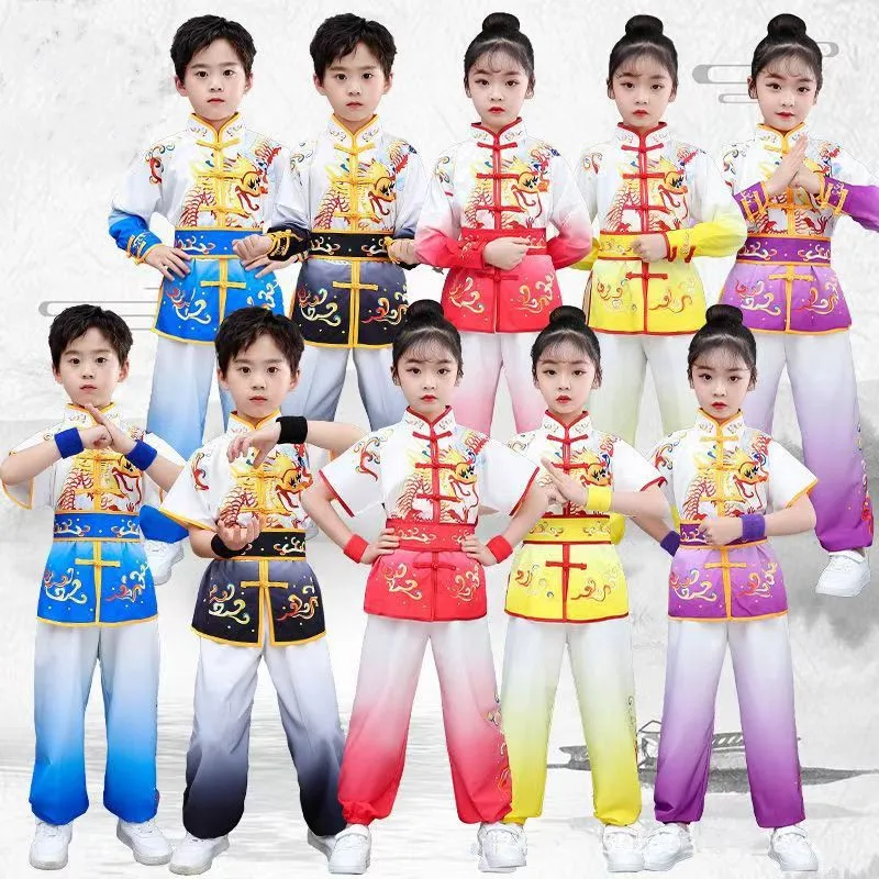 أداء الرجال النساء الأطفال فنون الدفاع عن النفس ازياء الصينية الكونغ فو موحدة ملابس الطفل الصبي مجموعة تاي تشي فتاة دعوى الاطفال الووشو مجموعات