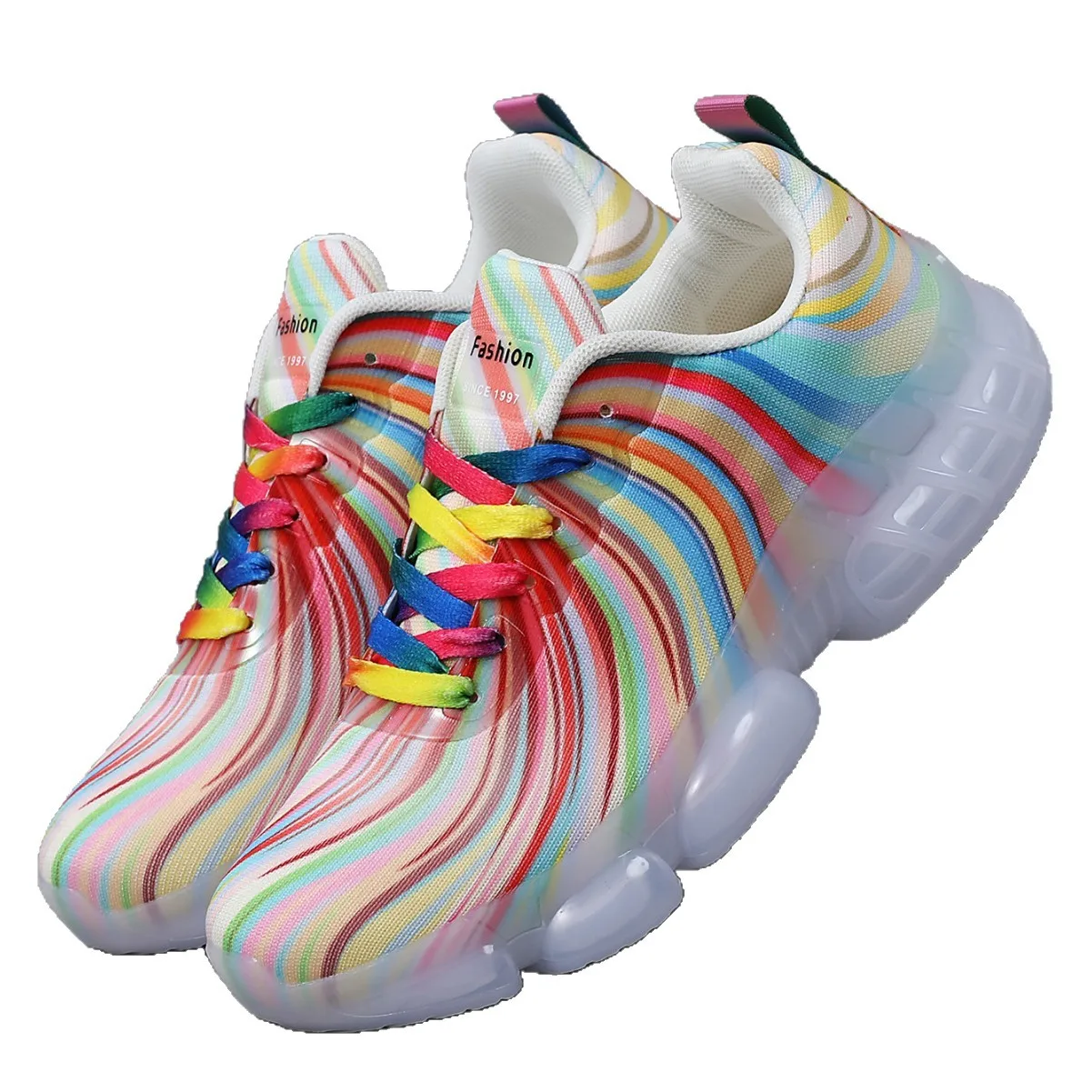 أحذية رياضية كاجوال مخططة بألوان قوس قزح للنساء، أحذية صيفية شبكية عصرية مسطحة للشاطئ والعطلات الترفيهية برباط للسيدات