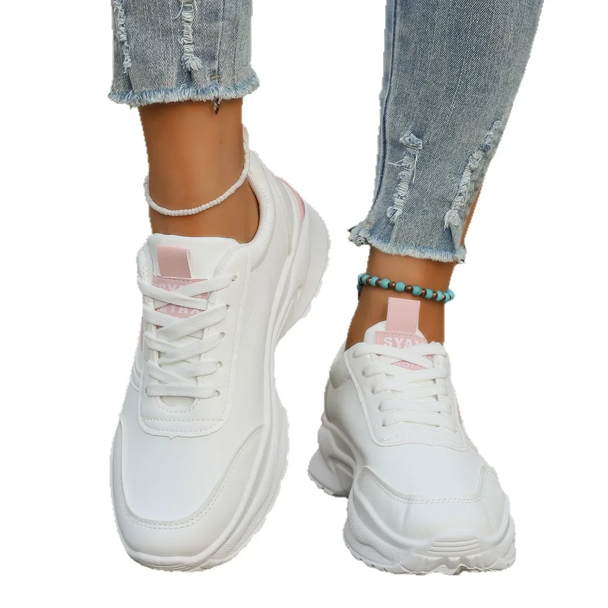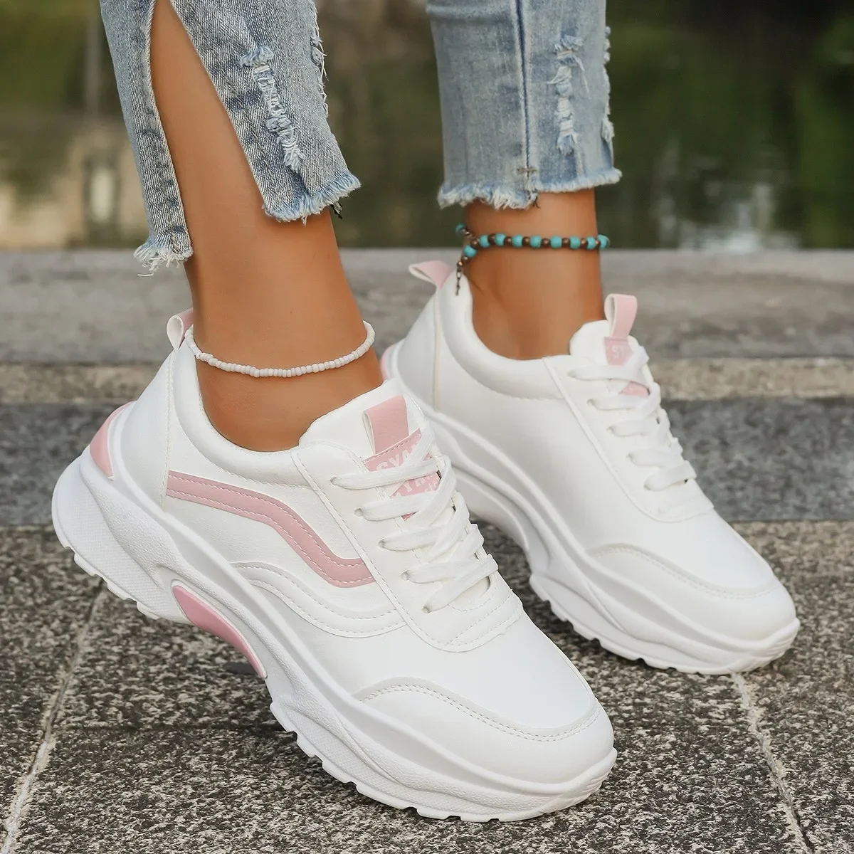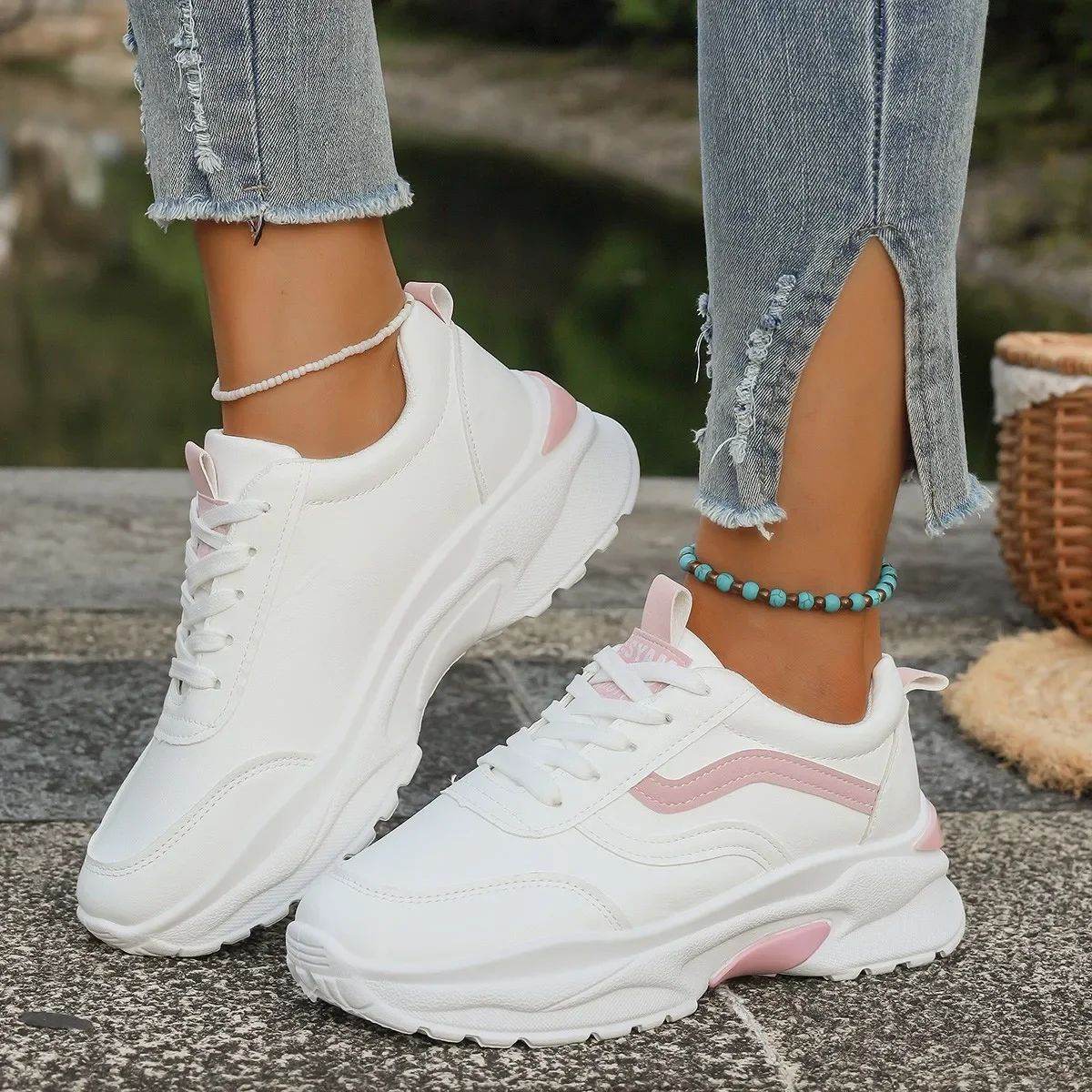أحذية رياضية نسائية أحذية أبي متعددة الاستخدامات سميكة القاع قابلة للتنفس سطح جلد ربيع الخريف نمط جديد النسخة الكورية