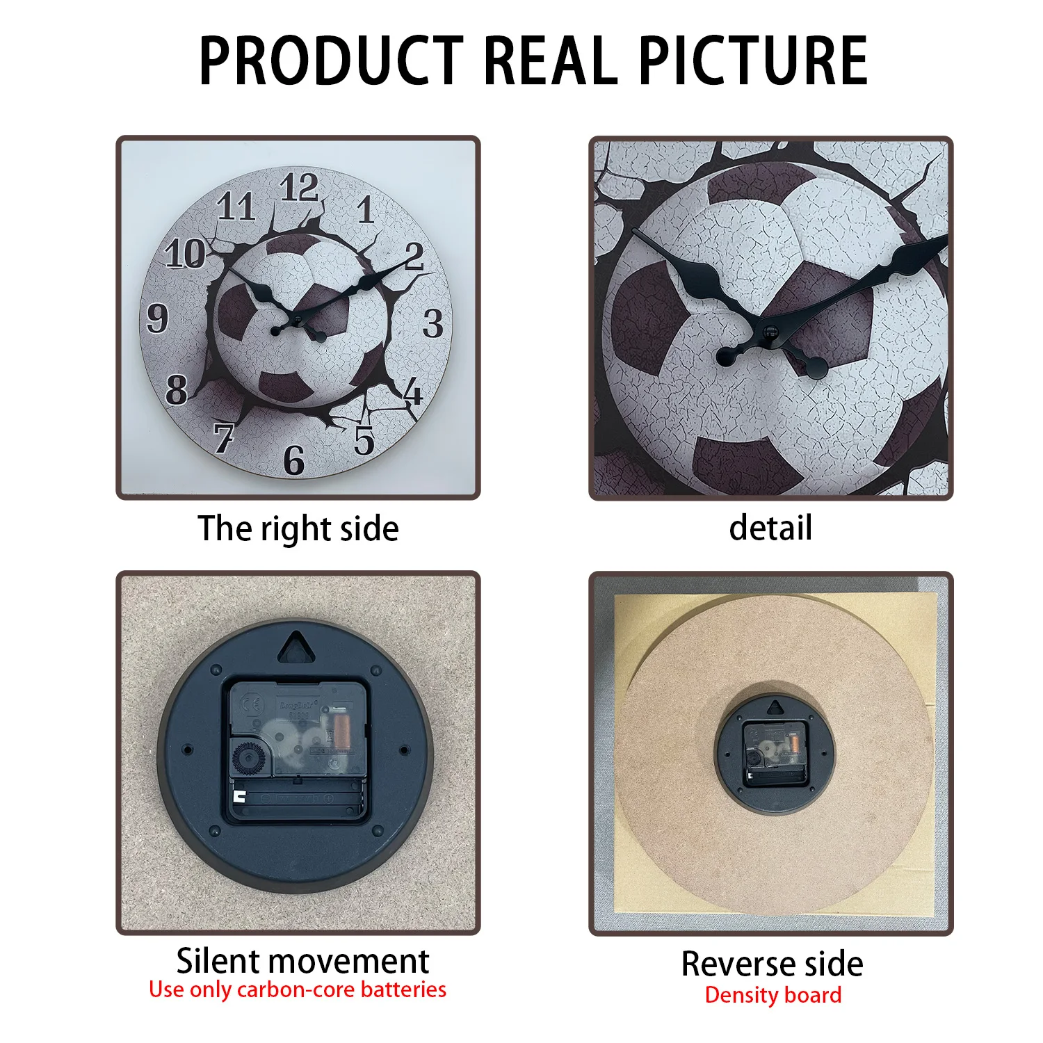 الإبداعية شخصية كرة القدم نمط ساعة حائط خشبية غرفة المعيشة غرفة نوم المطبخ ديكور المنزل ساعة حائط ساعة كوارتز صامتة هدية عيد 10 بوصة 12 بوصة 14 بوصة 16 بوصة (بدون بطاريات)
