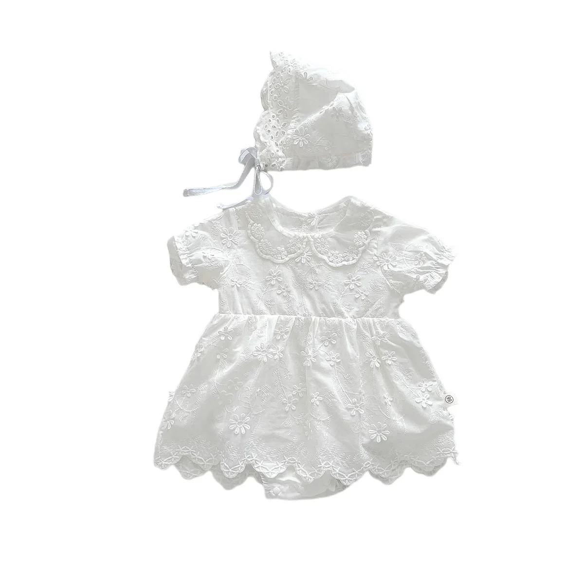 الأميرة الصيفية: الوليد طفلة مطرزة زهرة الدانتيل داخلية الرضع الاطفال قطعة واحدة هدية قبعة طفل الملابس مجموعة 2 قطعة