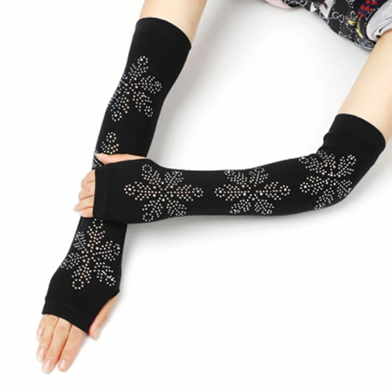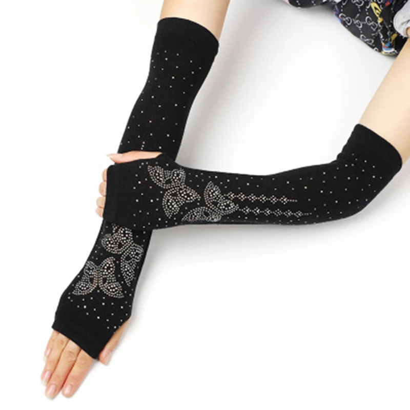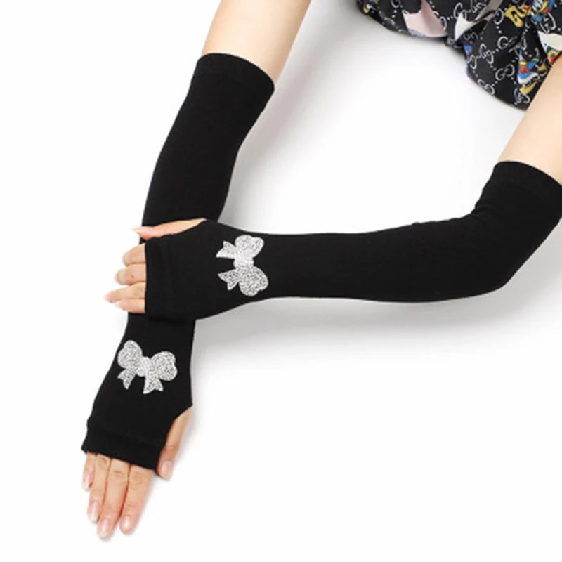 الإناث الأسود نصف اصبع طويلة محبوك الدافئة القيادة قفازات الإناث لطيف الثعلب بحار مرونة الرقص حجر الراين فاسق قفازات H37
