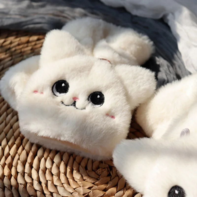 الأرنب أفخم الوجه السيدات قفازات الشتاء لطيف طويل الأذن القط رشاقته الدافئة Cold واقية نصف اصبع قفازات الإناث E65