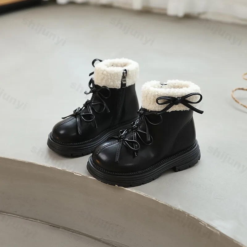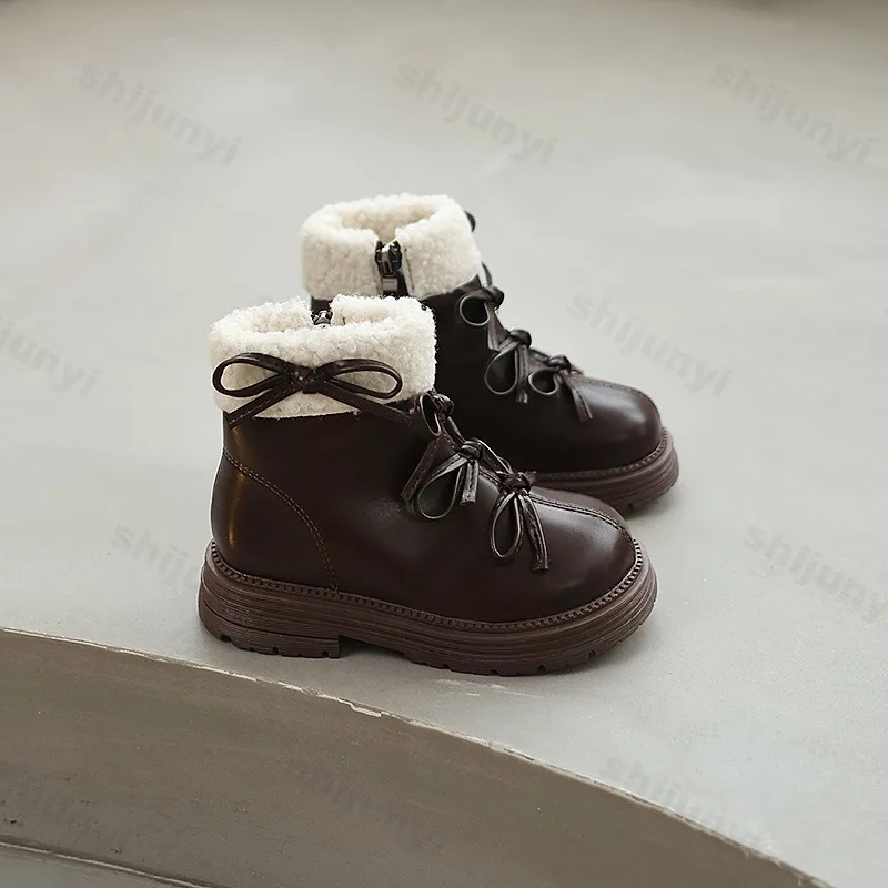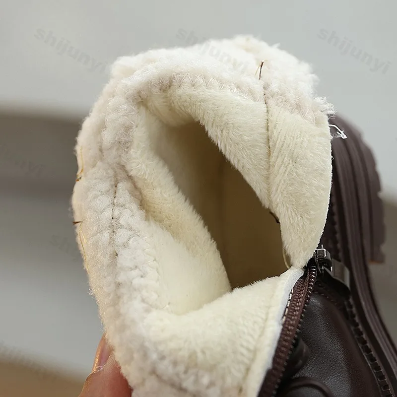 الأطفال الثلوج أحذية الاطفال حذاء من الجلد عدم الانزلاق سستة Soild اللون شتاء جديد الفتيات مريحة الدافئة أفخم القوس الأميرة الأحذية