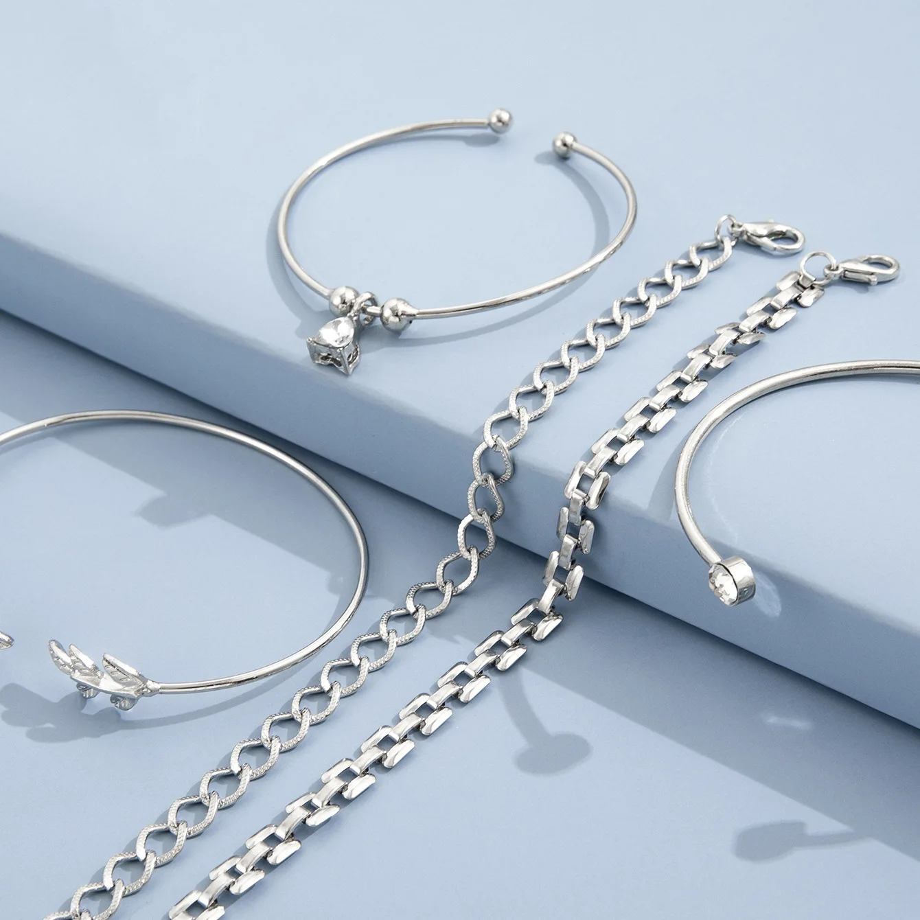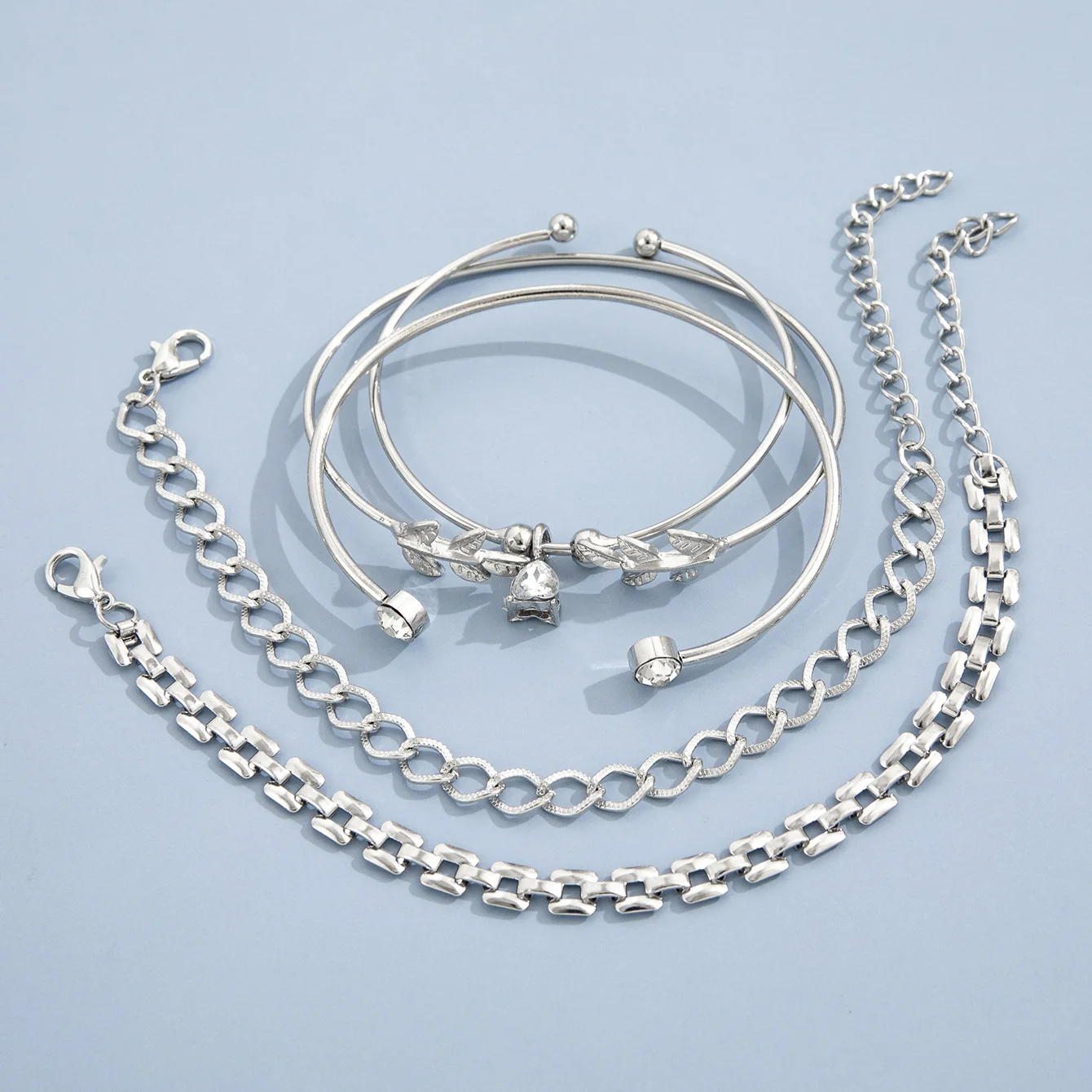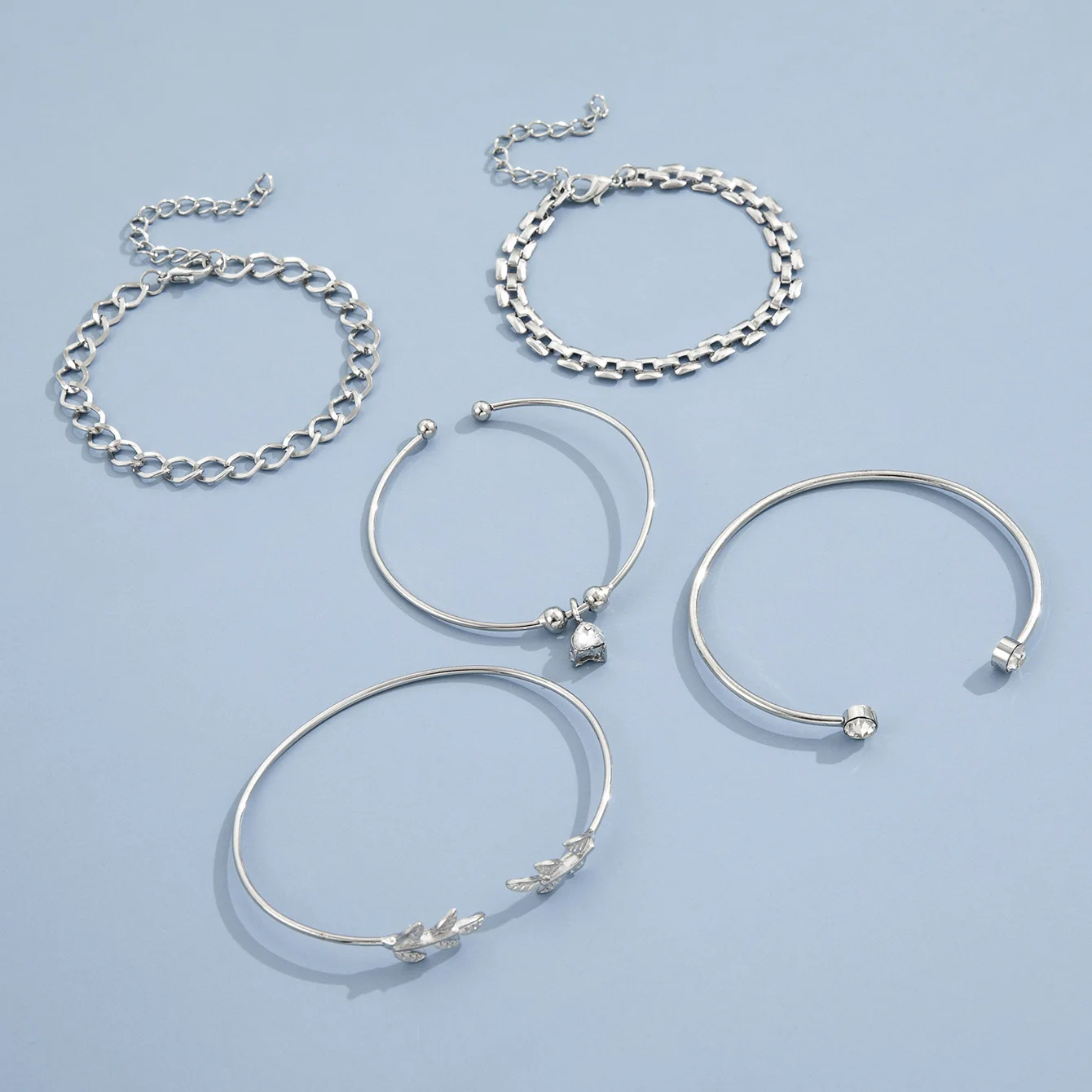 فضي اللون هندسية ربط سلسلة سوار مجموعة للنساء كريستال ليف المفتوحة الكفة الإسورة الإناث بوهو مجوهرات الإكسسوار