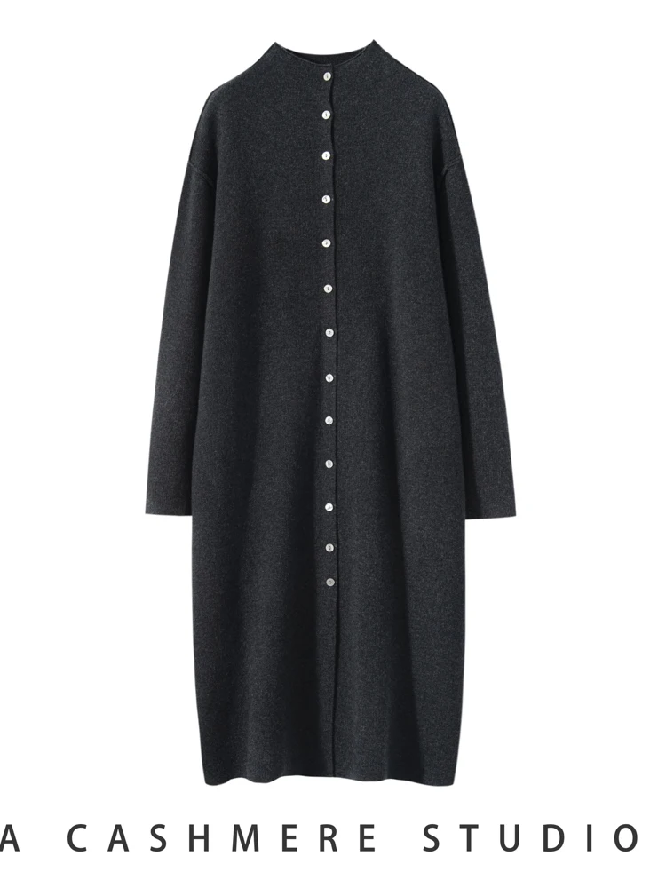 الفاخرة النساء 100% الكشمير سترة طويلة وهمية الرقبة طويلة الأكمام سترة الكشمير المعنقة معطف الخريف الشتاء سميكة فضفاضة الملابس النسائية