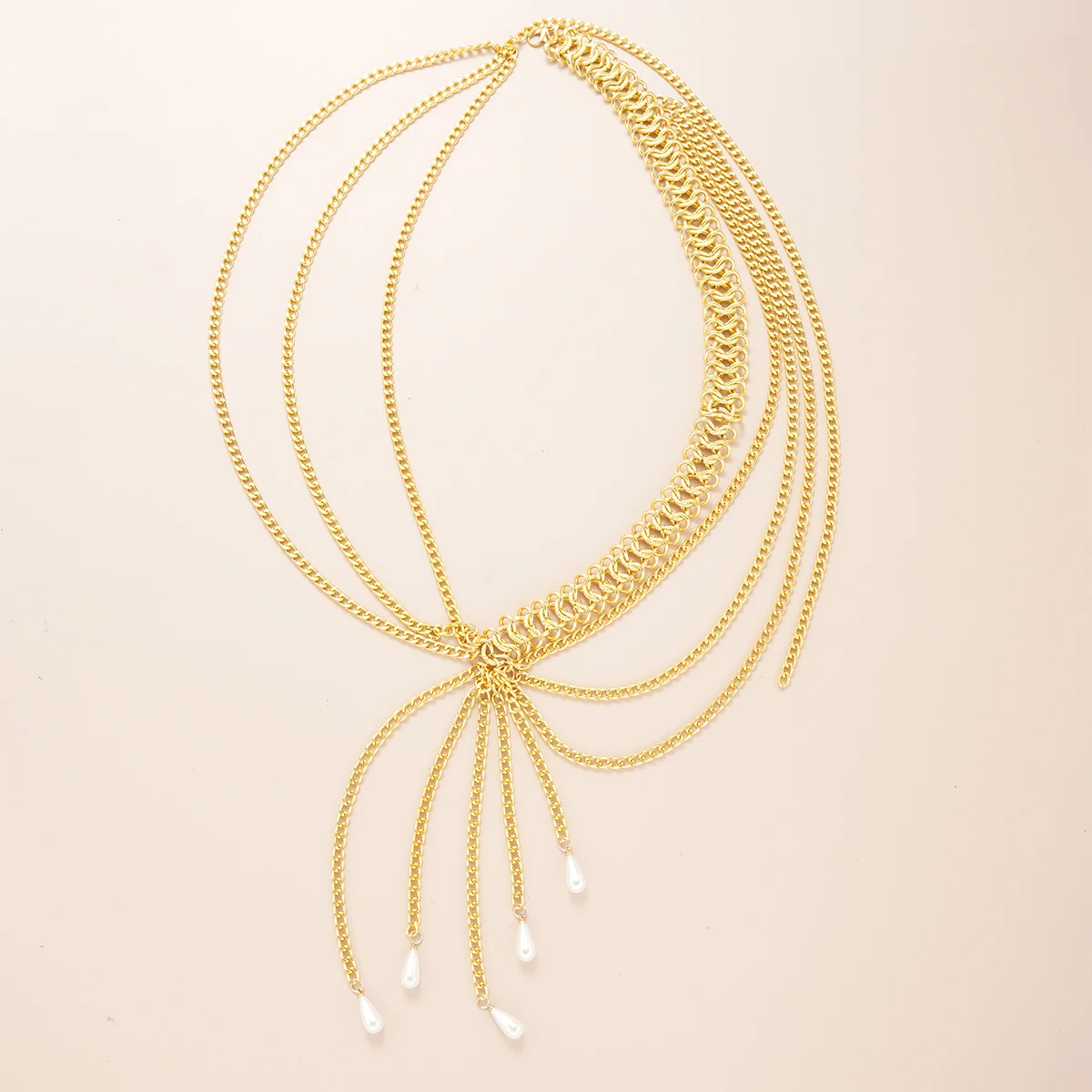 الفاخرة تقليد اللؤلؤ الخصر حزام البطن سلسلة للنساء الهيب هوب الجينز فستان البيكينيات طويلة حزام الجسم مجوهرات