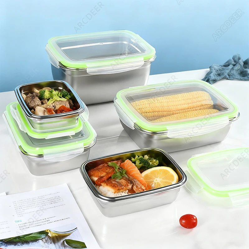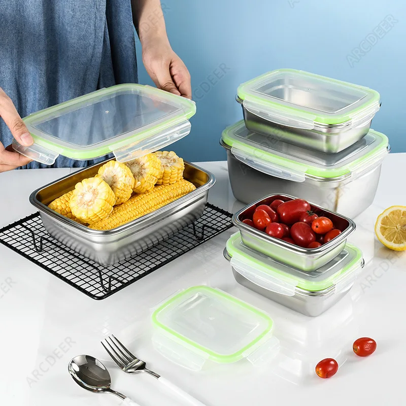 الفولاذ المقاوم للصدأ صندوق حفظ الطعام الطازج المطبخ الغذاء المنظمون مع الأغطية صندوق تخزين مبرد مختومة صناديق الغداء مانعة للتسرب