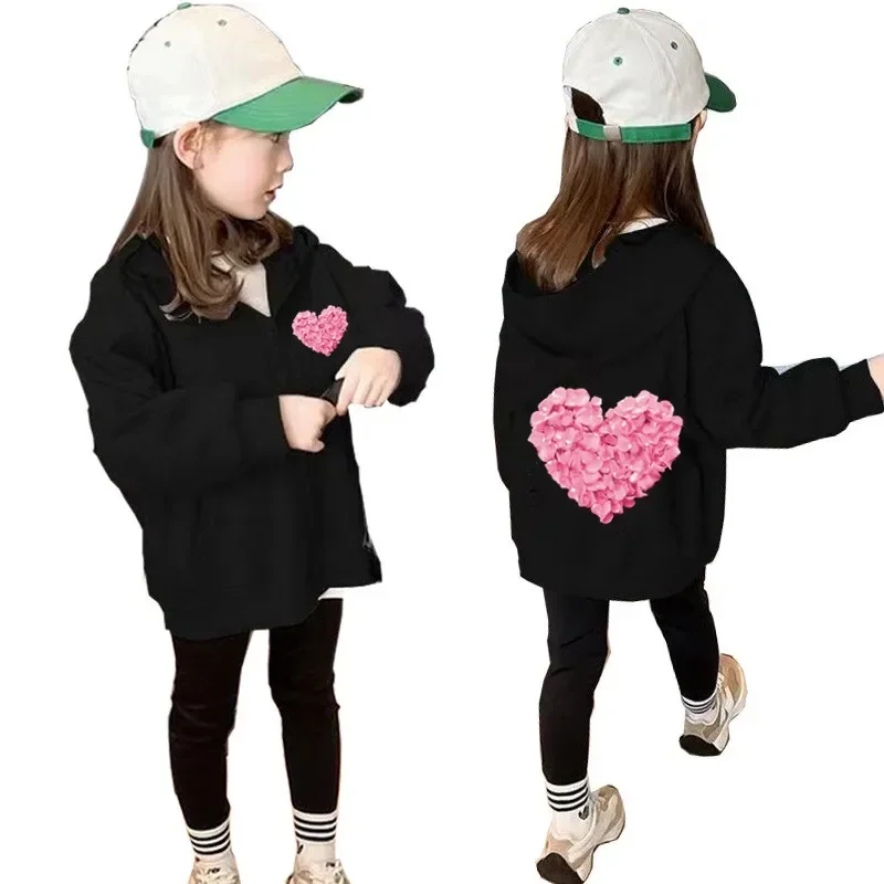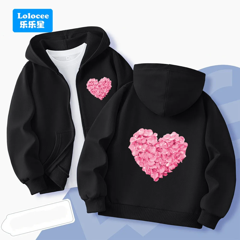 الفتيات الأزهار القلب طباعة سترة الكرتون موضة عادية كم طويل بلايز ملابس خارجية طفل الخريف ارتداء لطيف سستة هوديس AXMG1