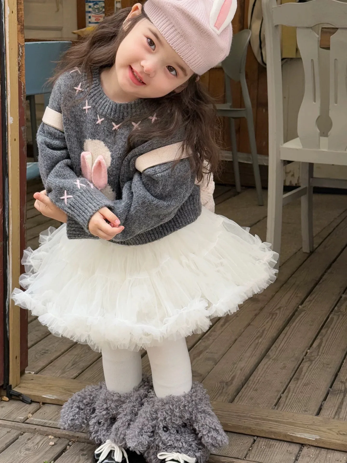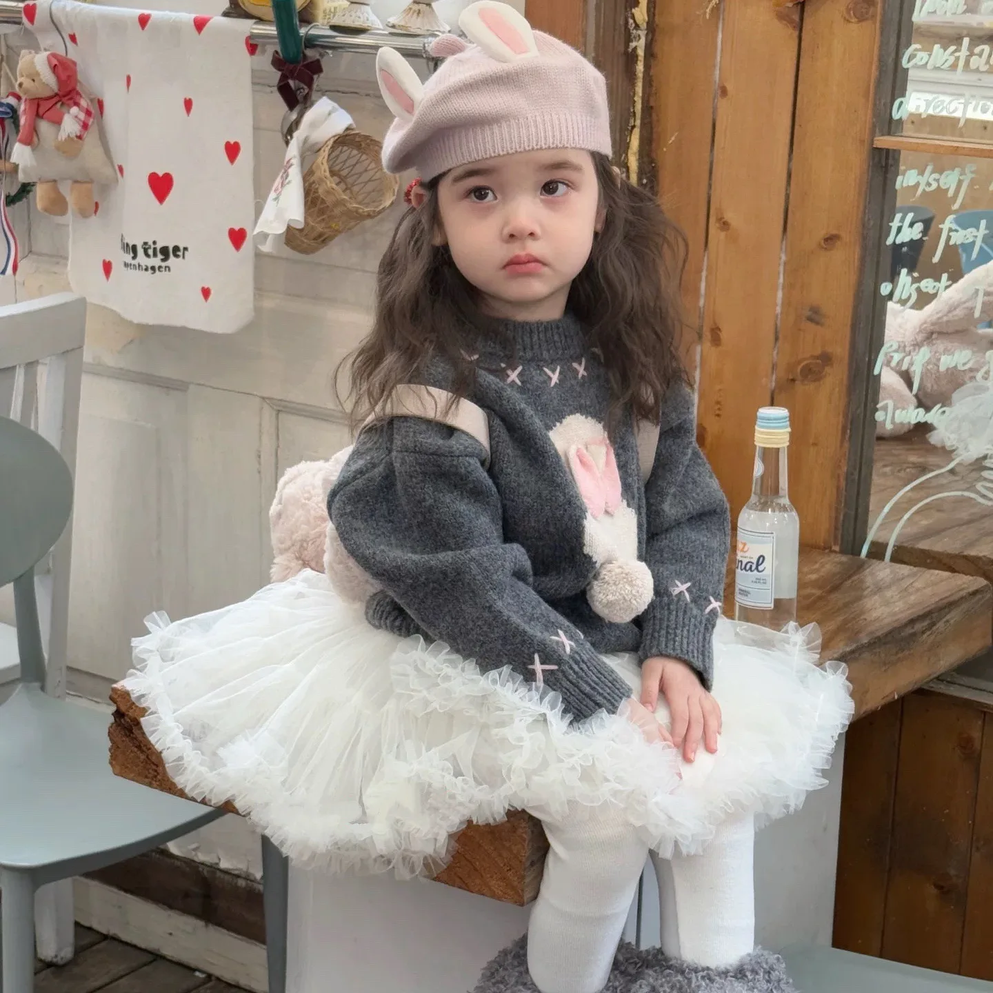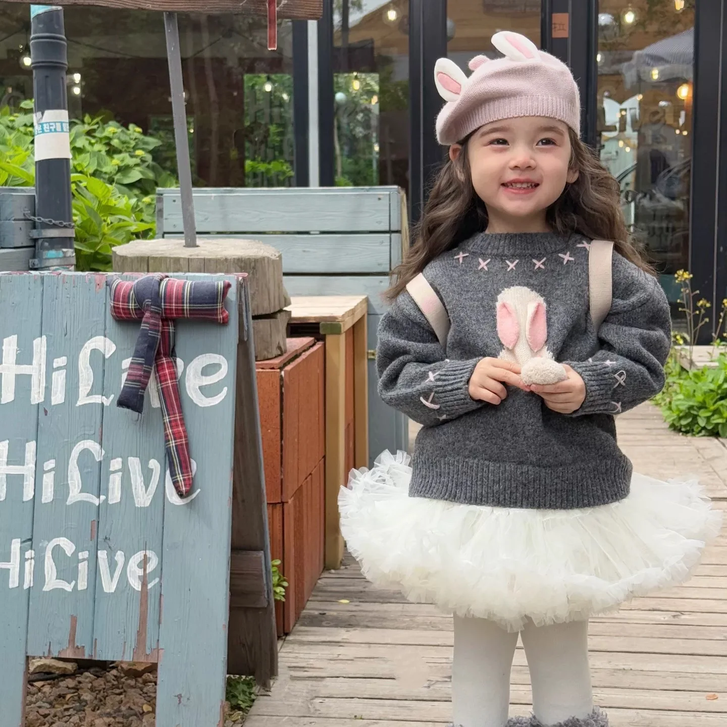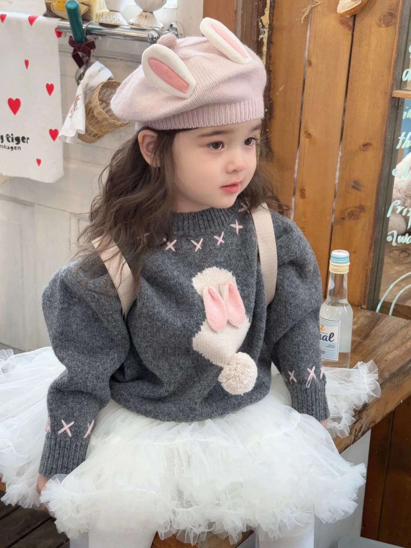 الفتيات الخريف جديد لطيف ثلاثي الأبعاد الكرتون سترة محبوك جولة الرقبة أعلى للأطفال ملابس الطفل