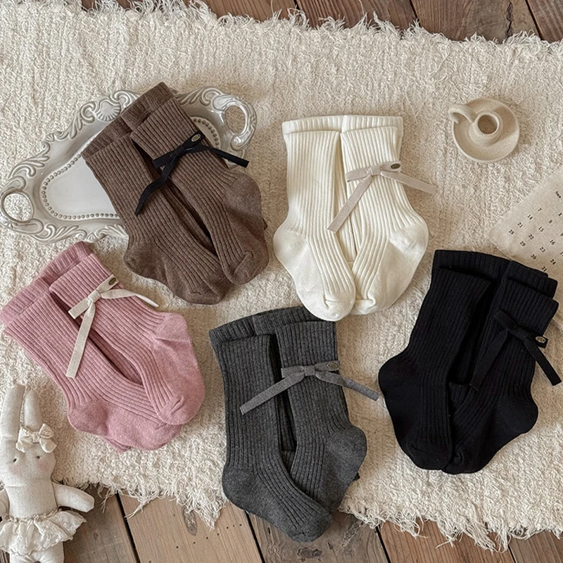 الفتيات جوارب طويلة بلون لينة الدافئة الفتيات الجوارب القوس عقدة محبوك الأطفال جوارب طويلة تخزين للفتيات