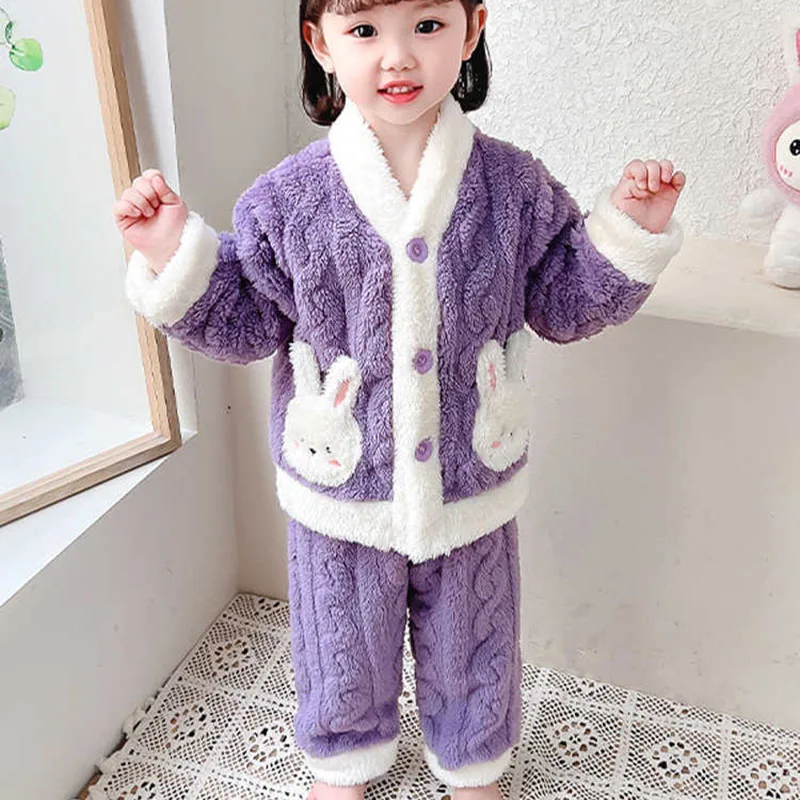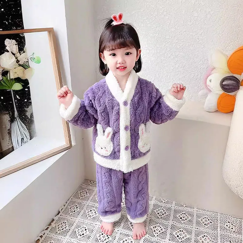الفتيات منامة دعوى الخريف والشتاء الفانيلا طفلة سترة مبطن سميكة الدافئة المرجان المخملية ملابس لطيف أرنب طويلة الأكمام