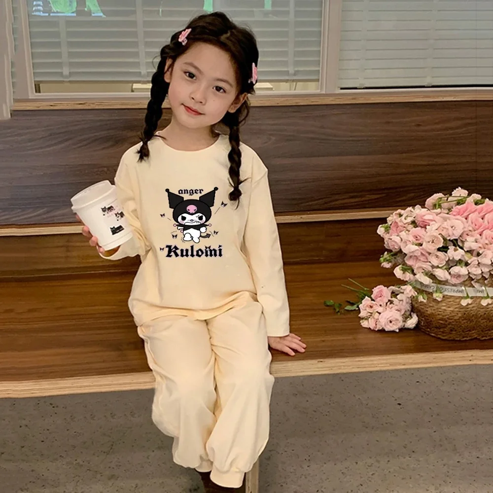 الفتيات طويلة الأكمام الكرتون قاعدة قميص الأطفال منامة عارضة الخريف قطعتين مجموعة ملابس الاطفال