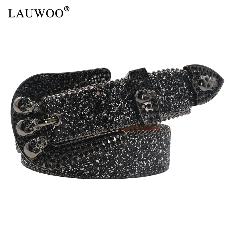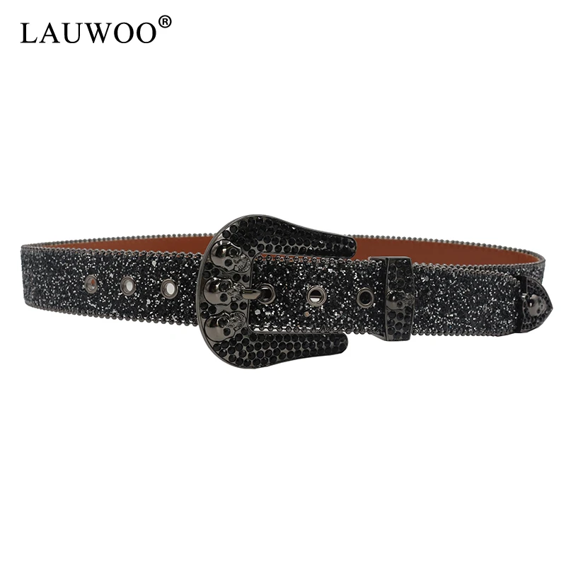 الجمجمة حجر الراين أحزمة للنساء الرجال Y2K حزام من الجلد كريستال رصع راعية البقر الغربية كاوبوي الماس بلينغ بلينغ حزام