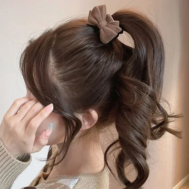القهوة اللون القلب معلقة الشعر حبل فتاة لطيف Bowknot الشعر مطاطا المطاط العصابات الشعر اكسسوارات للنساء