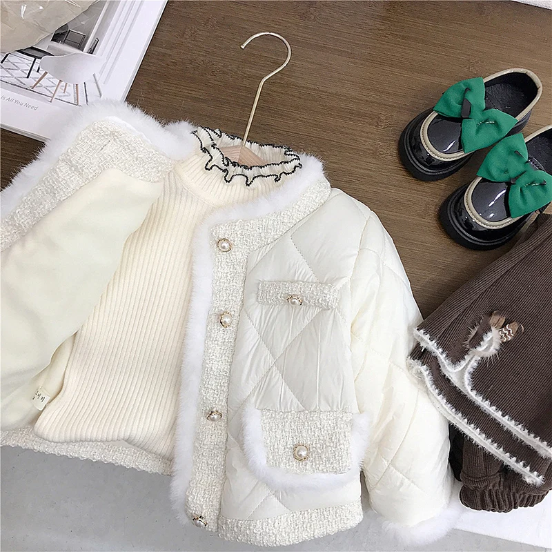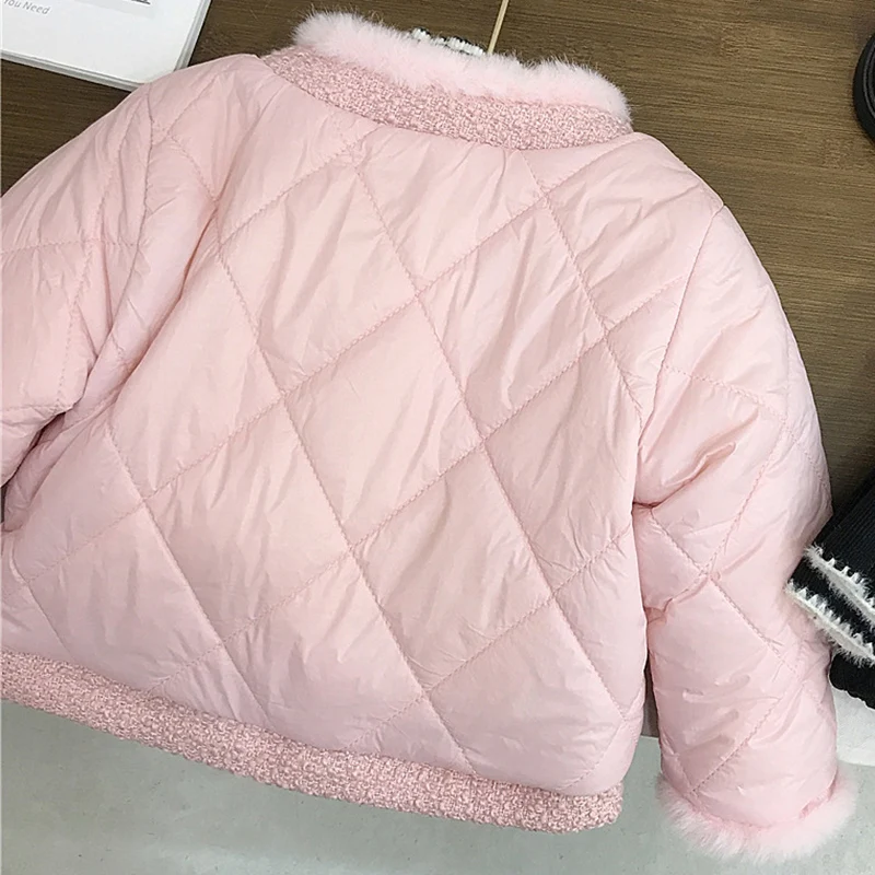 الخريف الشتاء الفتيات معطف المخملية موضة الدافئة سميكة أفخم الربط القطن وسادة مبطنة الكورية الأطفال قطنية عالية الجودة