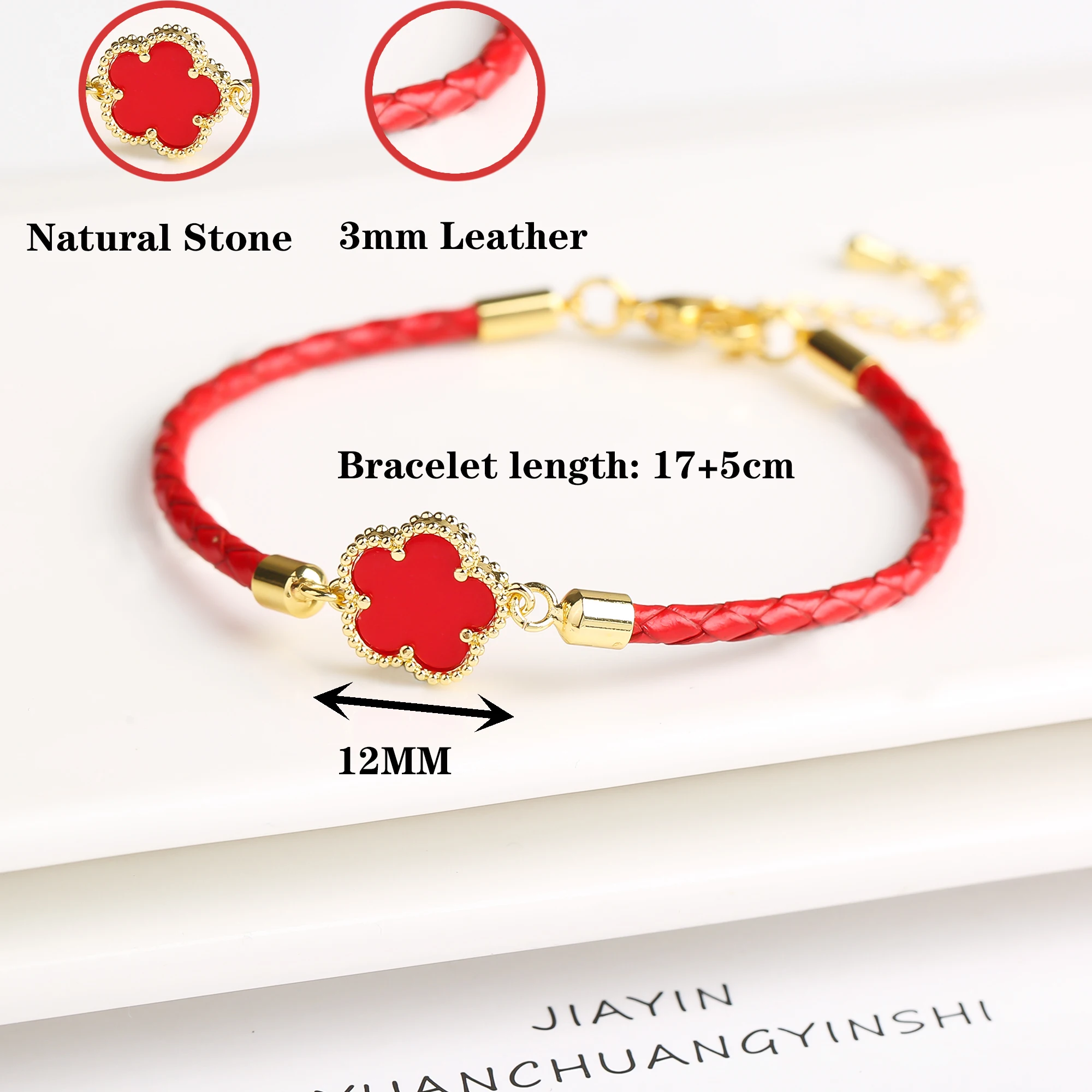 الكلاسيكية جلد طبيعي المنسوجة الحجر الطبيعي خمس أوراق زهرة سحر سوار أزياء للنساء الفتيات حزب مجوهرات الزفاف هدية