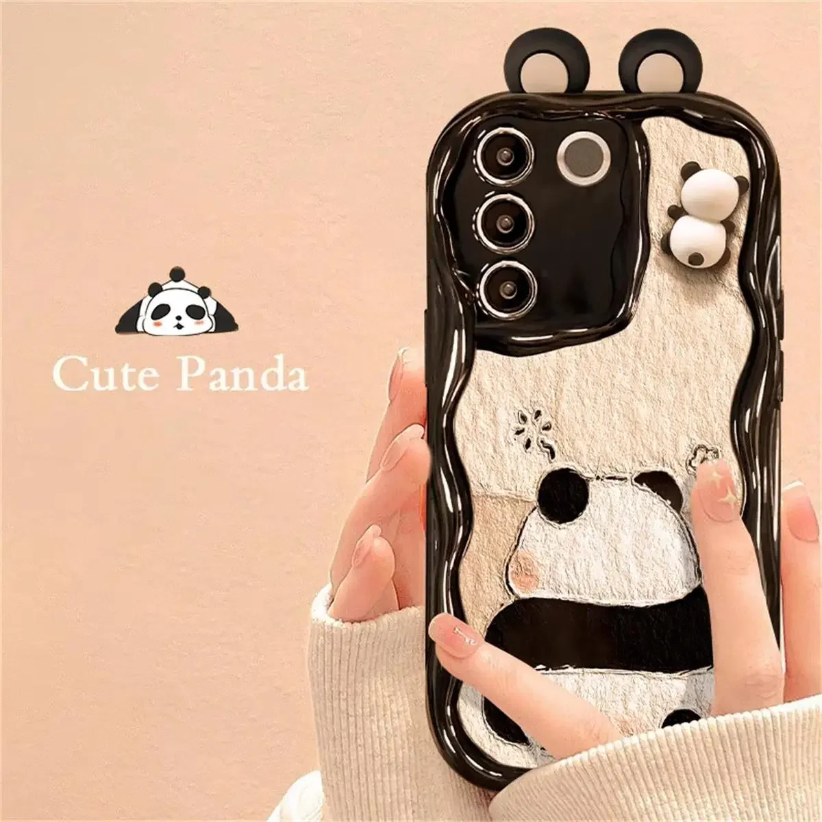 الكرتون ثلاثية الأبعاد الباندا آذان الهاتف لسامسونج غالاكسي S25 الترا S25 S24 S23 الترا زائد FE A35 A34 A55 A15 A16 A54 A06 A24 غطاء