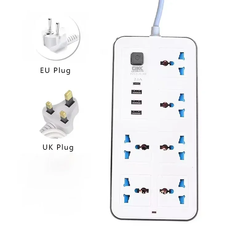 المملكة المتحدة الاتحاد الأوروبي الولايات المتحدة التوصيل قطاع الطاقة مقبس متعدد الاتصال مع 3 USB 1 نوع-C ميناء تهمة منفذ كهربائي عالمي 1.8 متر تمديد الحبل