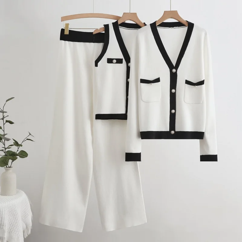 المرأة عادية متماسكة قطعة مجموعات الكورية أنيقة تريكو سترة سترة سترة دون أكمام عالية الخصر الزي