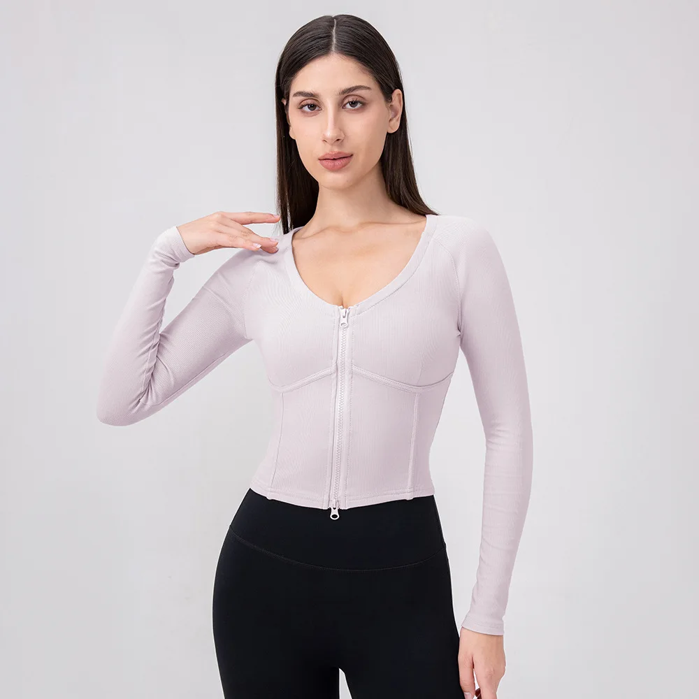 المرأة الخريف/الشتاء زمم سترة رياضية علوية هيكل السمكة منقوشة سليم صالح ملابس لليوجا U الرقبة الجري واللياقة البدنية بأكمام طويلة البلوز