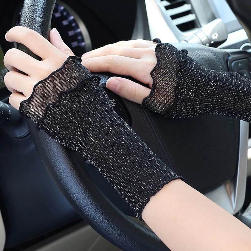 المرأة اليد الأكمام الأصفاد المعصم تكدرت الأزهار الأسود الدانتيل مطاطا سوار أنيق الفتيات قفازات المعصم رقيقة وتنفس تزيين
