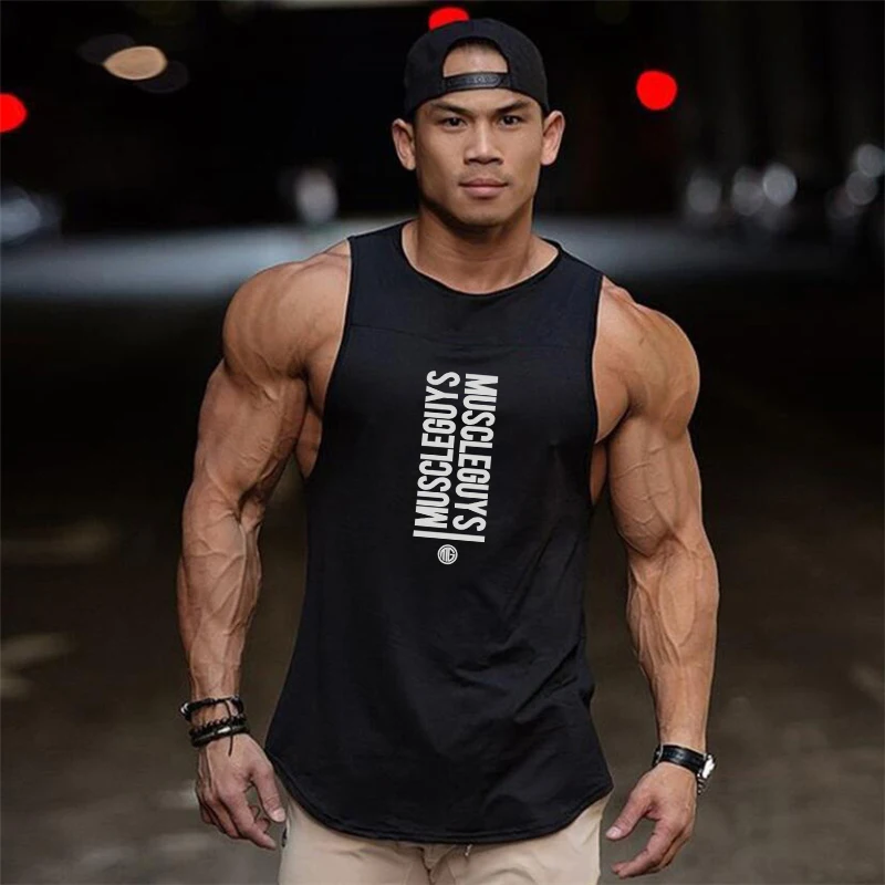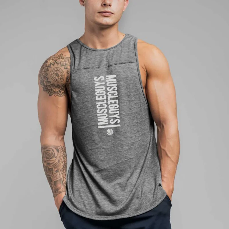 الصالة الرياضية اللياقة البدنية العضلات تانك القمم الرياضة فضفاضة الربط التدريب الملابس الصيف تشغيل سترات رجالي كمال الاجسام بلا أكمام تي شيرت