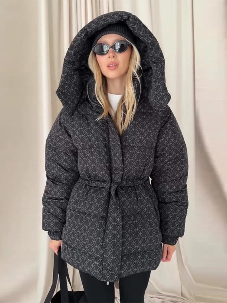 الشتاء الدافئة مقنعين سترة قطن المرأة موضة الوقوف سستة طويلة الأكمام الدانتيل يصل معطف 2025 أنثى شيك ملابس خارجية غير رسمية