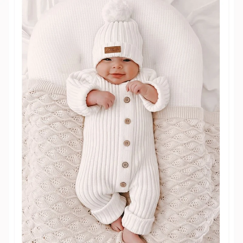 الشتاء الوليد متماسكة رومبير طفل الفتيان الفتيات محبوك بذلة تسلق دعوى الأطفال بلون عادية طفل الفتيات الملابس الناعمة