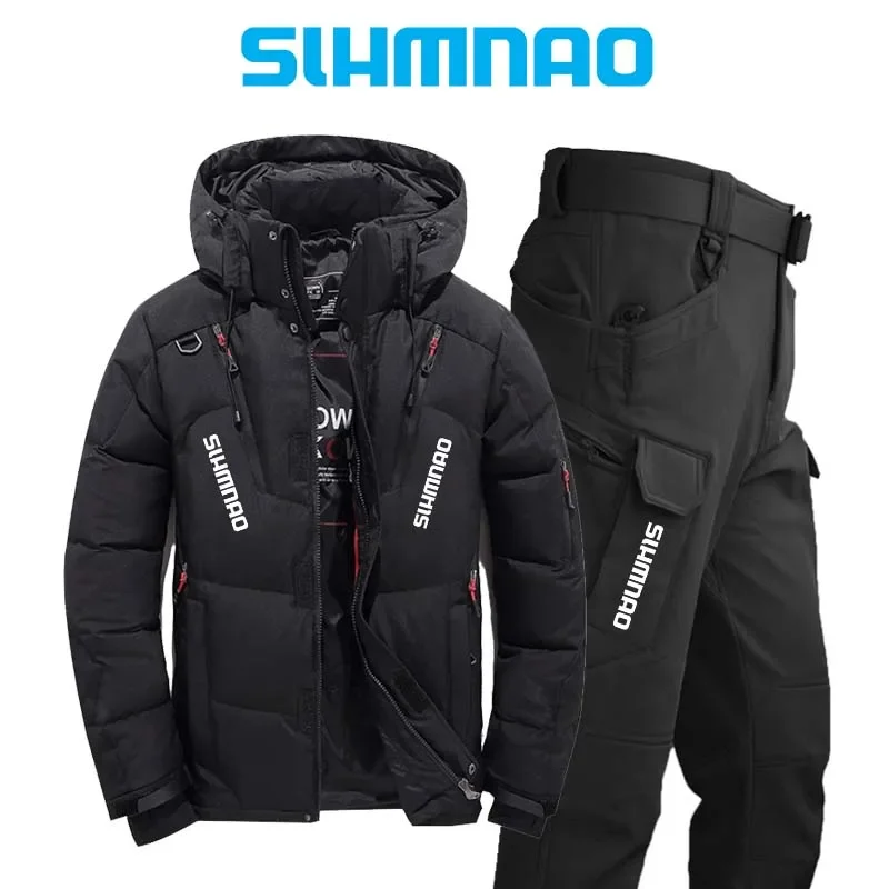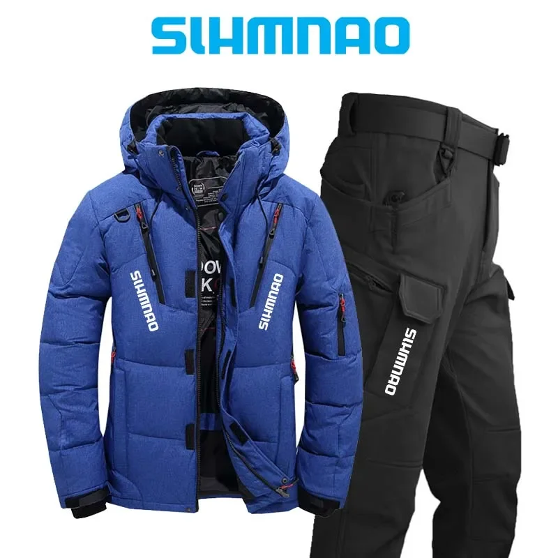 الشتاء الرجال سترة تسلق الجبال يندبروف ومقاوم للماء هوديي مجموعة أوزة ريشة الدافئة في الهواء الطلق الصيد والمشي لمسافات طويلة والتخييم Ja