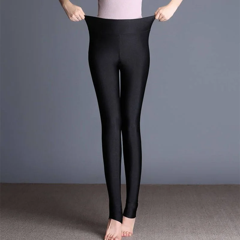 الشتاء سميكة السراويل اللامعة السراويل رقيقة يرتدي طماق عالية الخصر الدافئة النساء